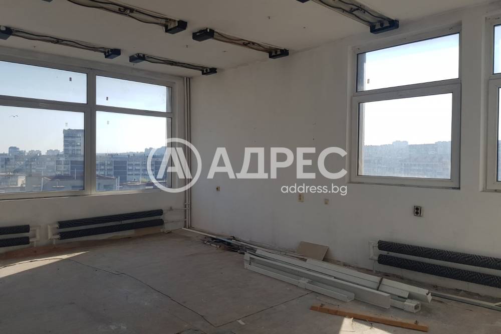 Предлагаме Ви, под наем, етаж от бизнес сграда, в района на Корабния техникум. Имотът е с площ 200 кв. м и се състои от голямо помещение и две допълнителни помещения, които могат да се използват за офис и/или стая за отдих. На етажа има два санитарни възела. Отоплението е на ТЕЦ. Има изградена климатична инсталация. Възможно преграждане на голямото помещение според нуждите на клиента. Сградата е с контрол на достъп, денонощна охрана и видео наблюдение. Цената е без ДДС. Към месечния наем допълнително се заплаща такса за ползване на асансьор, охрана и такса битови отпадъци. В района има свободен достъп за паркиране по всяко време. За повече информация и осъществяване на огледи: Ирена Божанова – 0896300129.