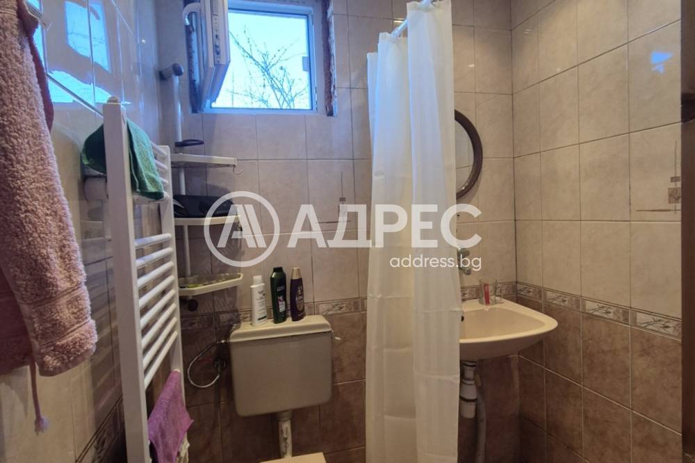 Предлагаме Ви имот, представляващ първи етаж от двуетажна масивна къща, със застроена площ 96 кв.м със следното разпределение: хол, самостоятелна кухня, две самостоятелни спални, с излаз на тераса, баня и тоалетна в общо помещение, килер /мокро помещение/ и коридор. Къщата е в отлично състояние, сменена PVC дограма, Ел. и ВиК инсталации. Отоплението е посредством локално парно - камина на дърва с водна риза. Продава се във вида от снимките. Към имота има и две бечови стаи с площ 10 кв.м; прилежащо дворно място с площ 268 кв.м, самостоятелен масивен гараж с площ 17 кв.м, с бетонова плоча. В дворното място има възможност за изграждане на барбекю, кът за отдих и т.н. Имотът е разположен в началото на кв. Средна кула, в близост до магазини и спирки на градския транспорт.