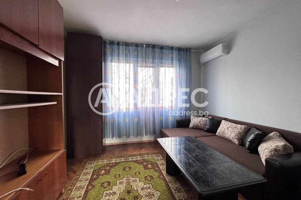 Предлагаме Ви двустаен апартамент под наем в района на училище „Тома Кърджиев“, представляващ кухненски бокс, трапезария и хол в едно, спалня, баня и санитарен възел заедно, една дълбока остъклена тераса. Апартаментът е в добро състояние, отдава се напълно обзаведен и оборудван с мебели и техника. Има поставен климатик, много топъл и слънчев апартамент. Входът е с контрол на достъп. Свободно паркиране в района. За повече информация и осъществяване на огледи- Яница Добрева 0890300105