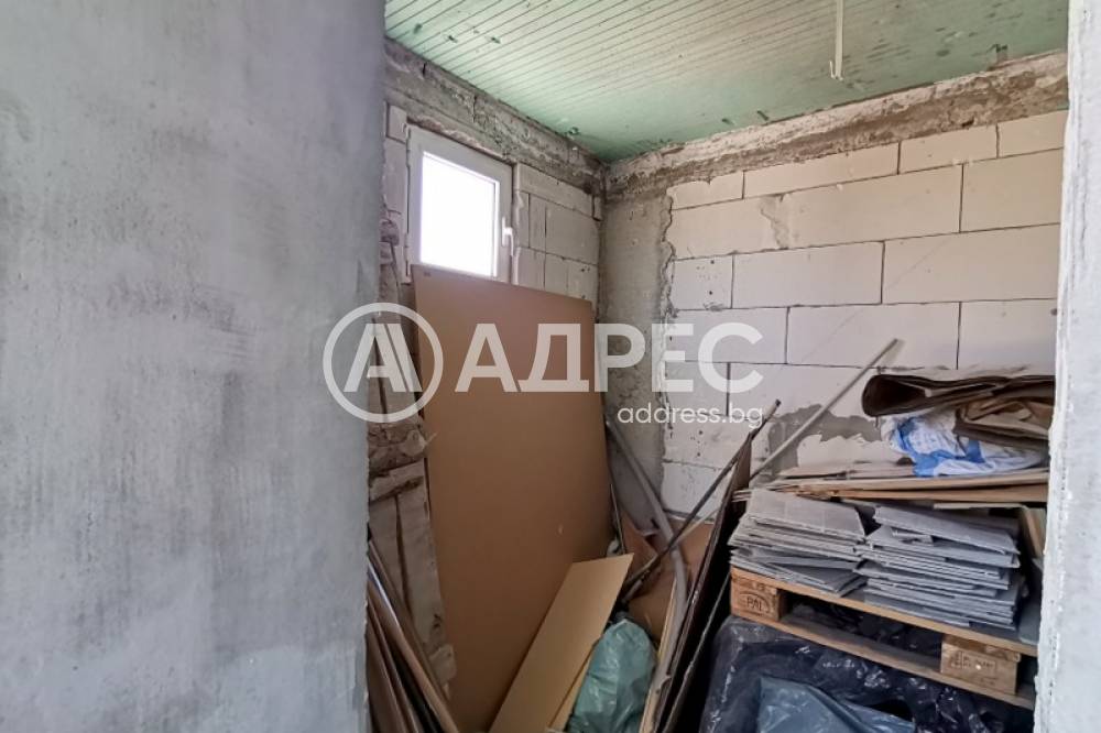 Състояние на имота: стени - фино завършени, тавани - с фибран, дограма - от PVC, метална входна врата, канализация и водопровод - на тапа, електроинсталация - до точка, с монтирани ключове и контакти.