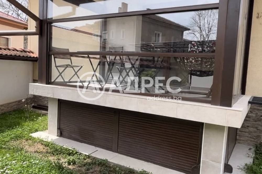 Добре поддържан двор с капково напояване и гараж с подова настилка, който може да се ползва и като ателие или кабинет. Гаражът е с площ от 33 кв.м..