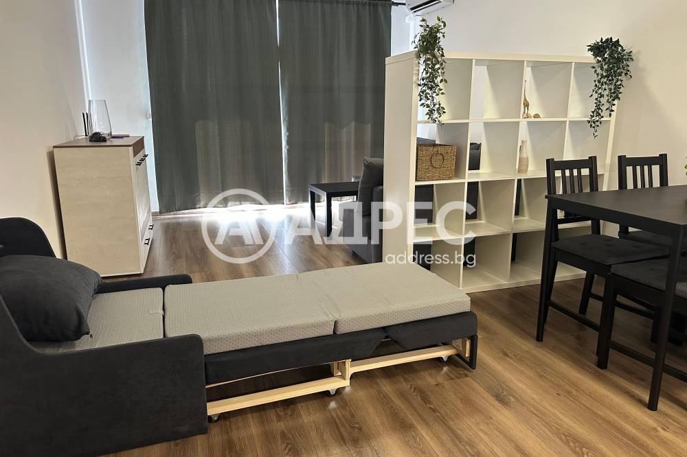 Предлагаме просторно и слънчево студио в жилищен комплекс SHARTRES. Жилището е разположено на втори етаж и се състои от голяма стая open space, разделена на отделни кътове. Жилището е с функционално разпределение. Висок клас довършителни работи. Напълно обзаведен имот, висок клас бяла и черна техника. Подово инфрачервено отопление, климатик DAIKIN. Свободно паркиране.