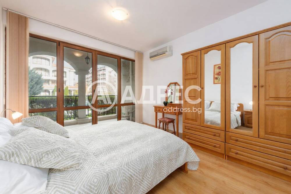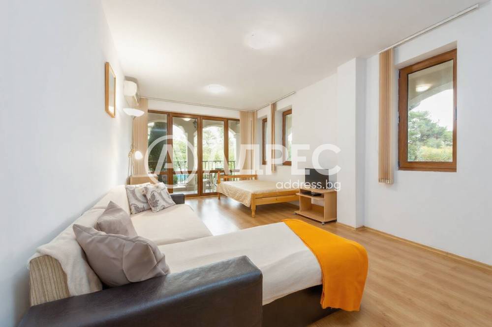 Двустаен апартамент в к. к. Слънчев бряг. Площ на имота 91,53 кв.м., етаж 1 /партер/. Състои се от коридор,дневна с кухненски бокс и трапезария, спалня, баня с тоалетна и две тераси.