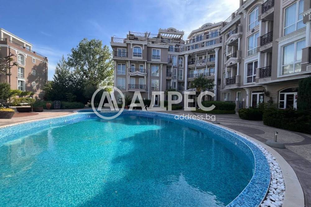 Тристаен апартамент в к. к. Слънчев бряг. Затворен комплекс. Площ на имота 90 кв. м., етаж 3 от 5, асансьор. Състои се от: дневна с кухненски бокс с изход към тераса, две спални, една от които е тераса, баня с тоалетна и входно антре. До плажа 10 минути пеша. Напълно обзаведен и обобрудван.