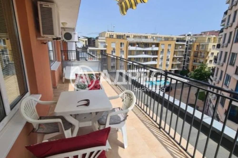 Двустаен апартамент в комплекс в Слънчев бряг /близо до хотел Котва/. Имотът е с площ 63 кв. м., етаж 4, без асансьор.
