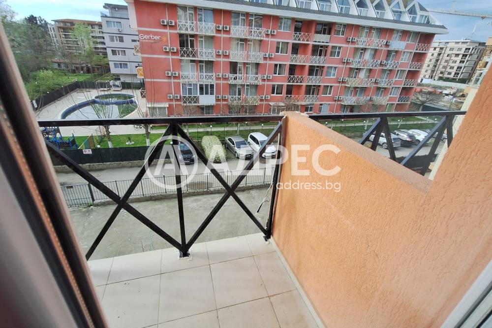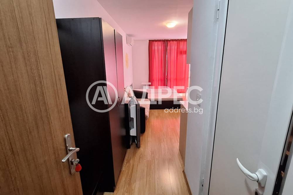 Студио в затворен комплекс в. к. к. Слънев бряг. Имотът е 30,30 кв. м., етаж 4 от 6, асансьор. Имотът се състои от: дневна с кухненски бокс, тераса, баня с тоалетна. Напълно обзаведено и оборудвано. Такса поддръжка 360 евро на година.