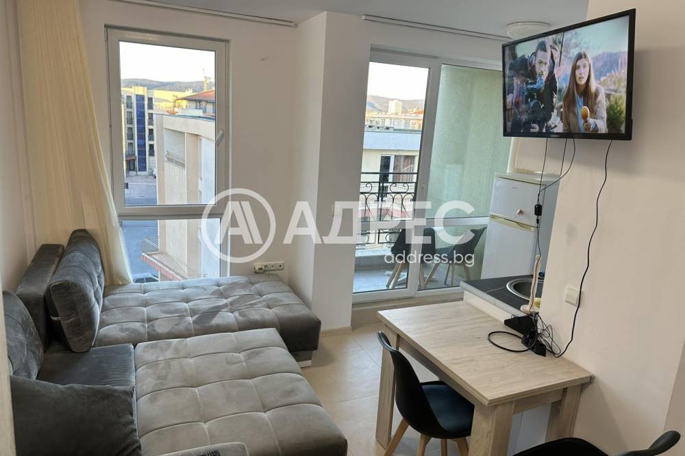 Едностаен апартамент в к.к. Слънчев бряг. БЕЗ ТАКСА ПОДДРЪЖКА. Площ на имота 30 кв. м., етаж 4 от 6, асансьор. Състои се от коридор, баня с тоалетна, дневна с кухненски кът и зона за спане, тераса.