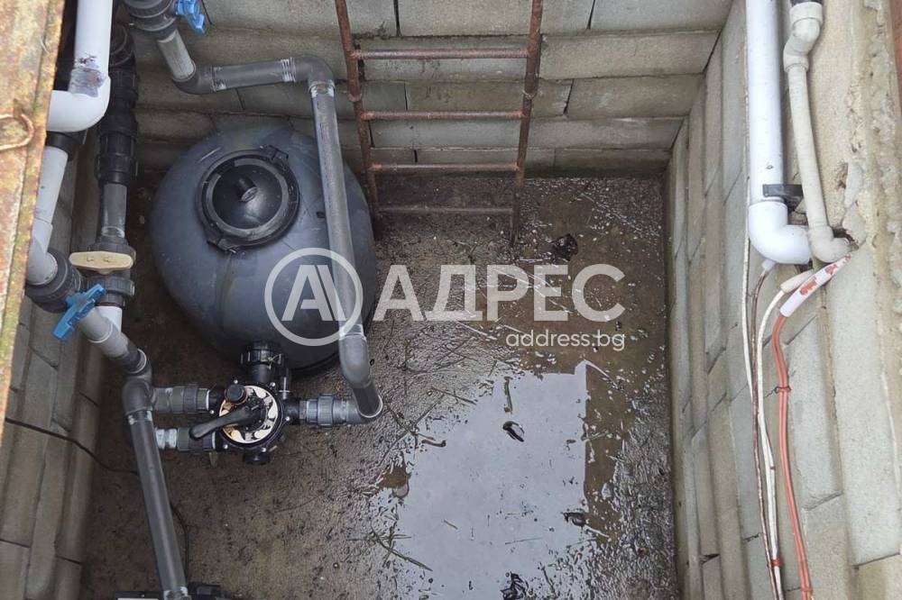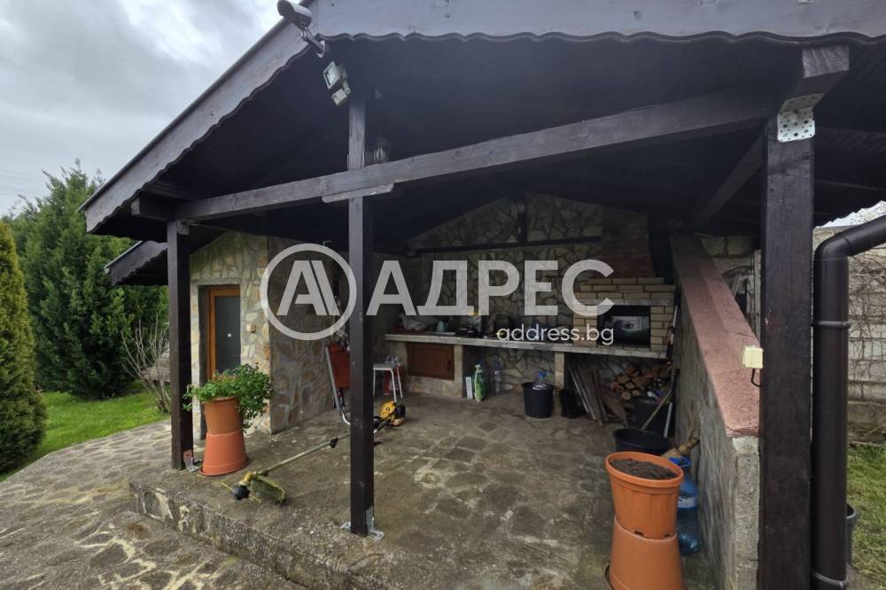В двора има навес с барбекю зона със санитарен възел към нея. Отделно помещение за инструменти и градинска техника.