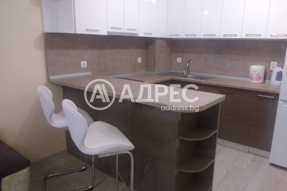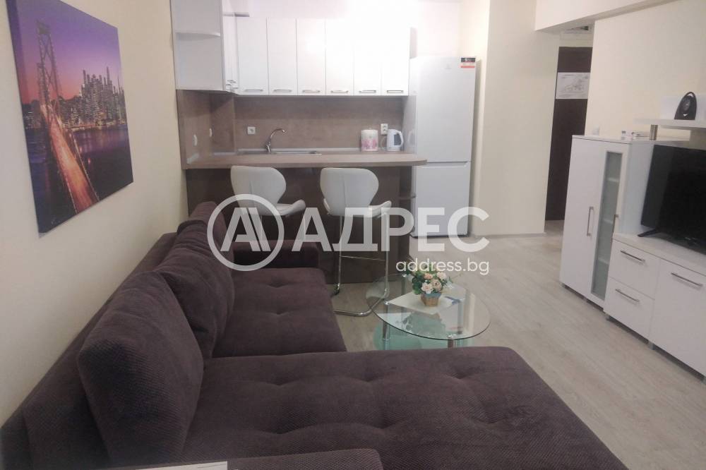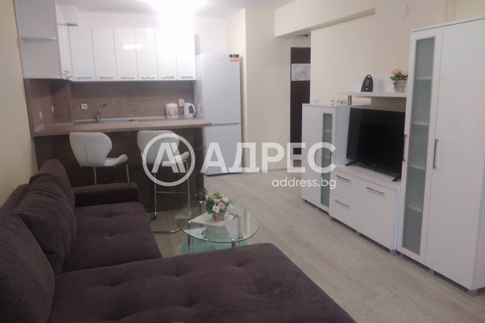 Обзаведен апартамент ново строителство в центъра. Първи наематели. Състои се от дневен тракт /кухня, трапезария, хол в общо пространство/, една спалня, санитарен възел и една тераса.Имотът е напълно обзаведен със съвременни мебели и техника. Отопление с ТЕЦ. Прекрасна панорама.