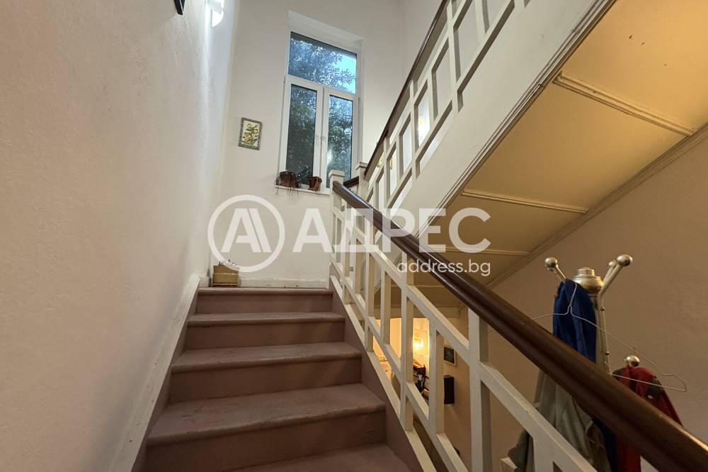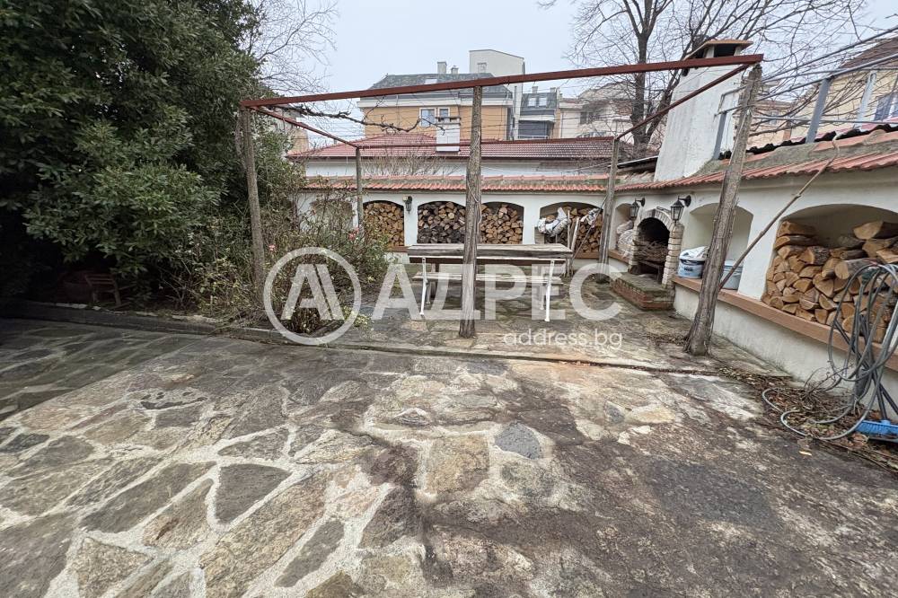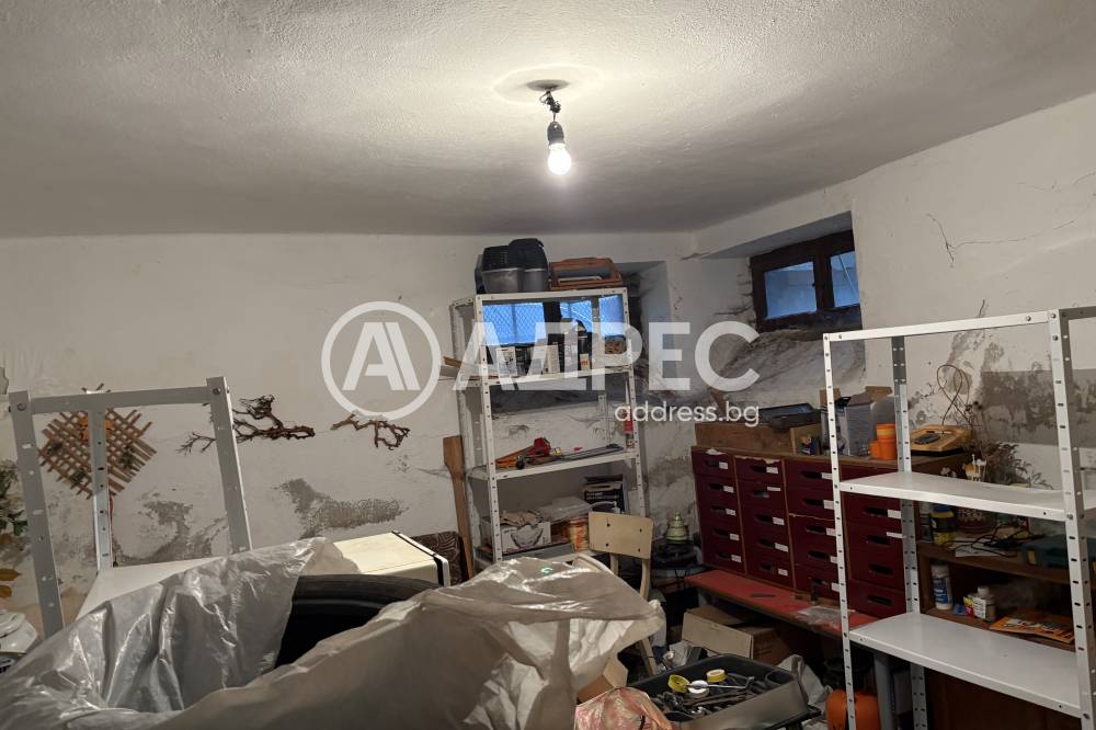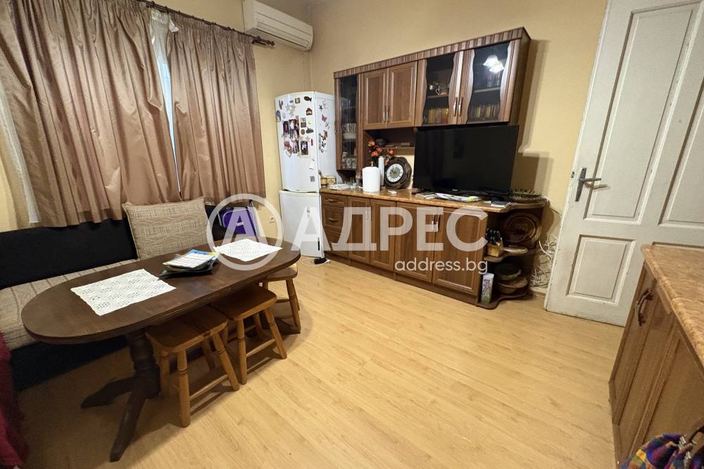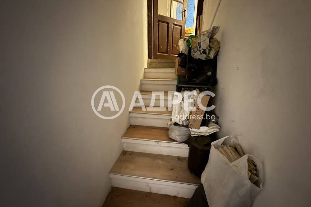 Самoстоятелен втори етаж от тухлена къща в района на старото зъболечение. Имотът се състои от сутерен, втори етаж и таванско помещение. Площта на жилищния етаж е 95 кв.м. Разполага със спалня, хол, трапезария, кухненски бокс, тераса, баня с тоалетна и вестибюл. Вътрешно стълбище, сменена дограма, подови настилки - ламинат и дюшеме. Имотът се продава с обзавеждането. Таванското помещение е 30 кв. м., с прозорци като може да се преустрои за живеене. Сутеренен етаж 27 кв.м. с две стаи и тоалетна. Дворът е в идеални граници, 1/2 от 290 кв.м.