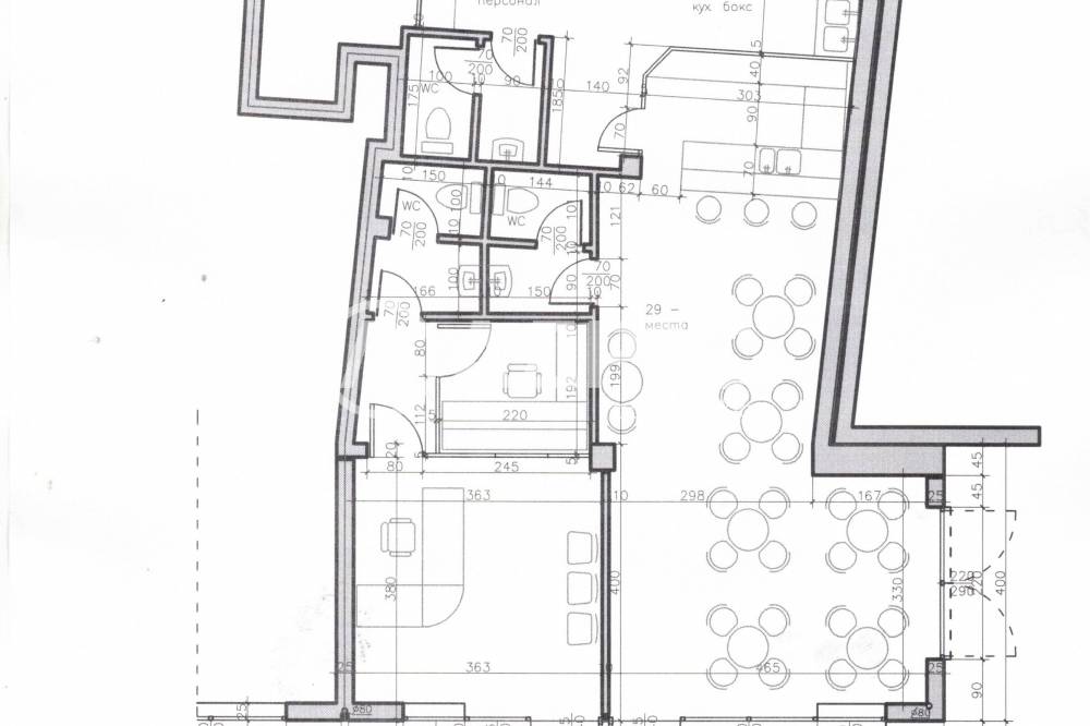Партерно помещение 94 кв.м. в идеален център за търговска дейност или заведение. Разделено е на два обекта, като единият с площ 67 кв.м. е обособен като магазин със склад и санитарен възел. Вторият обект е 27 кв.м. със статут на офис. Сградата е масивна, с големи витрини към улицата. Имотът е подходящ както за магазин, така и за заведение. Мястото е с атрактивна локация и човекопоток.
