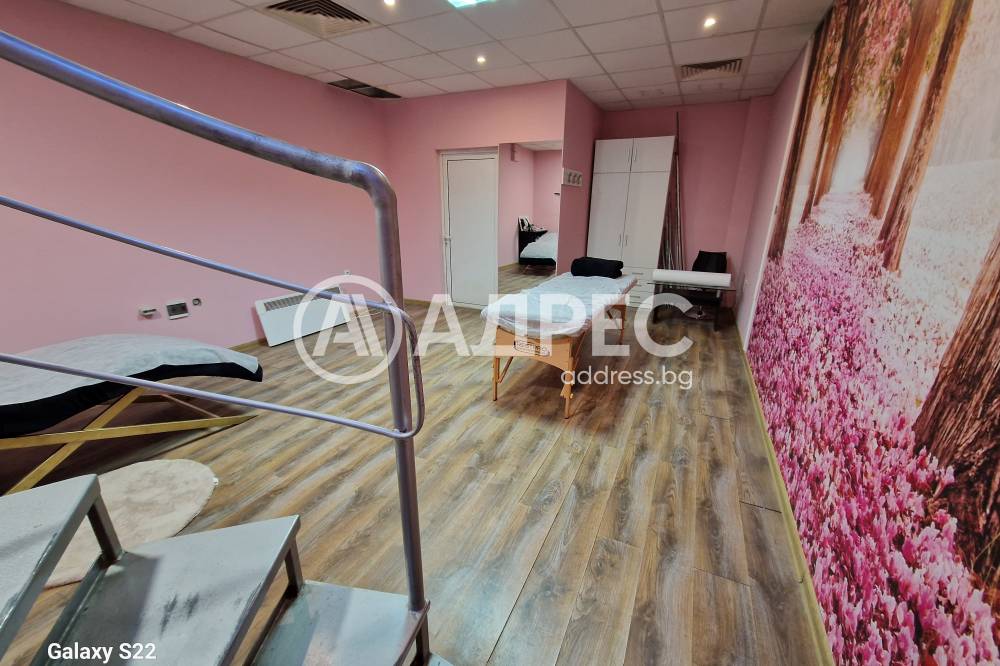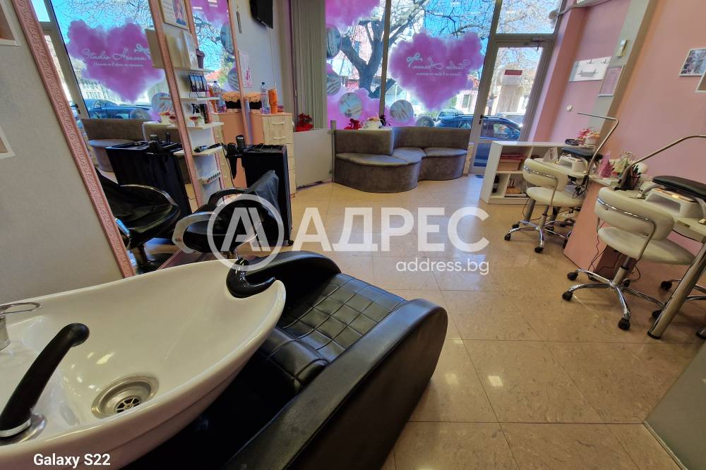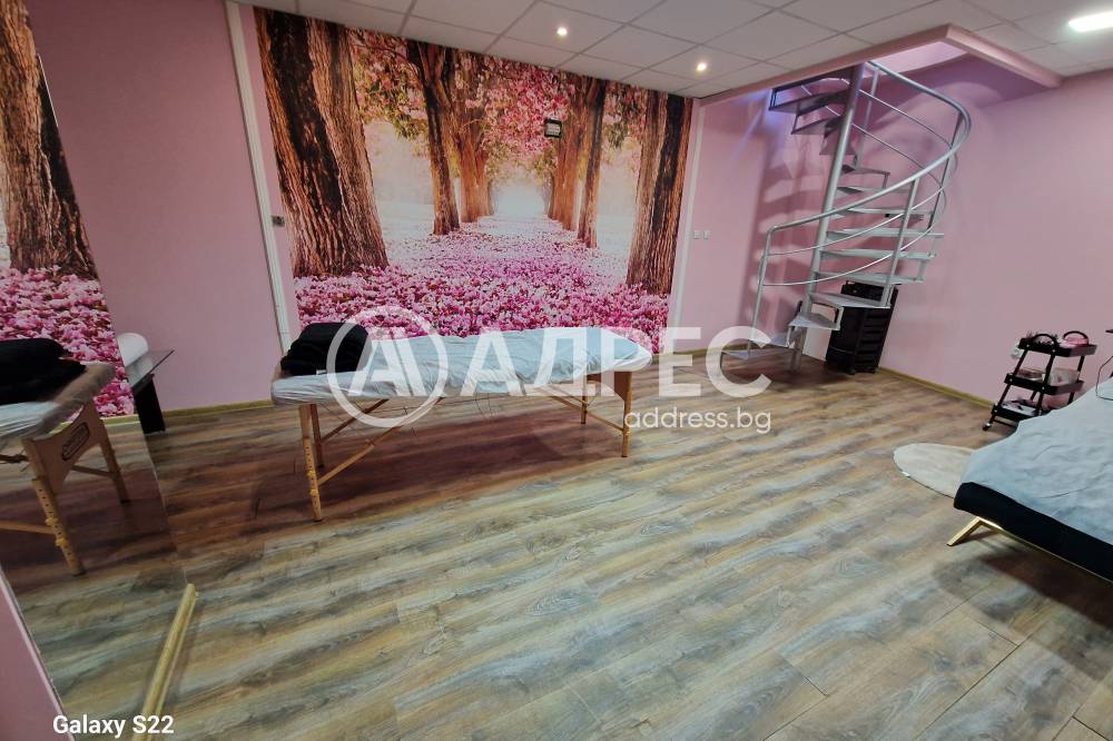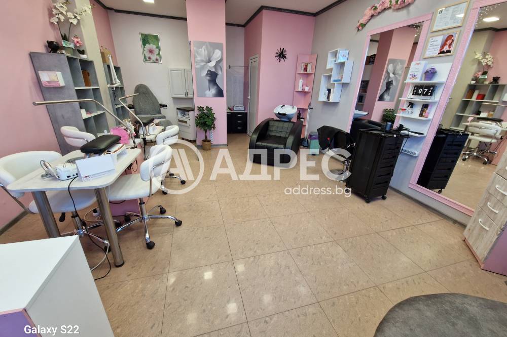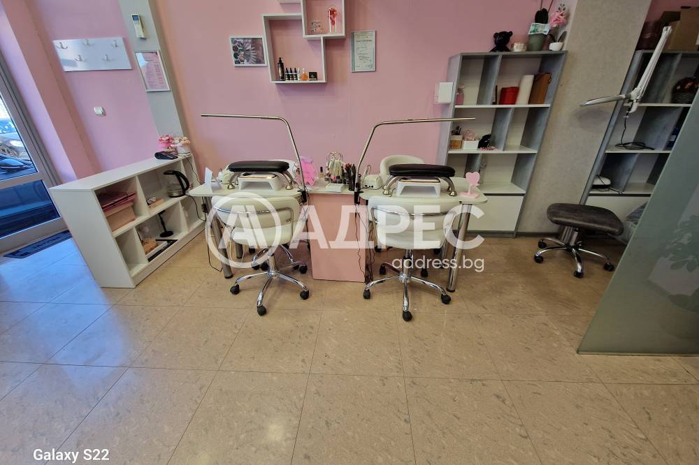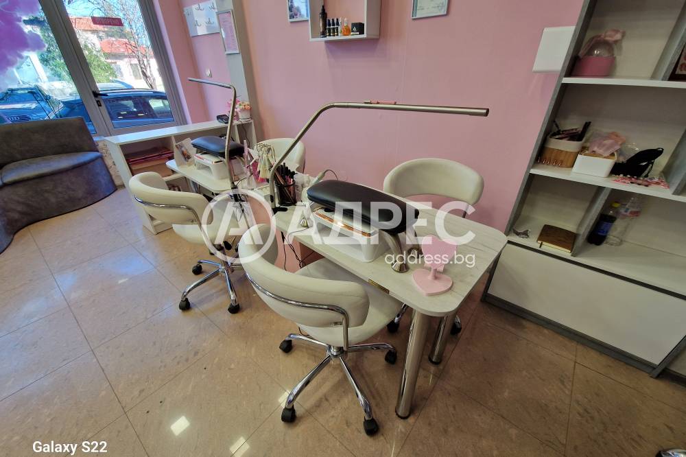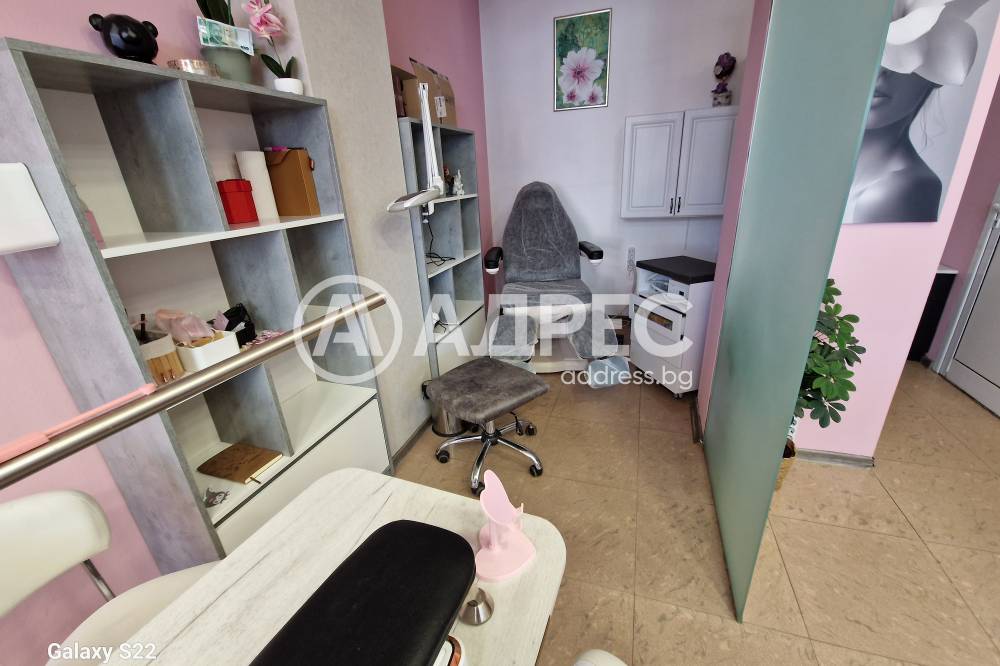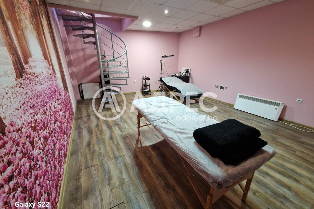 Студио за красота, напълно готово за експлоатация. Имотът разполага с две помещения на две нива. Сутеренът е подходящ и обурудван за масажен салон. На ниво партер има две работни места за фризьор, две места за манкюр и педикюр. Обурудвано е с висок клас техника. Помещението е подходящо за офис и други дейности.