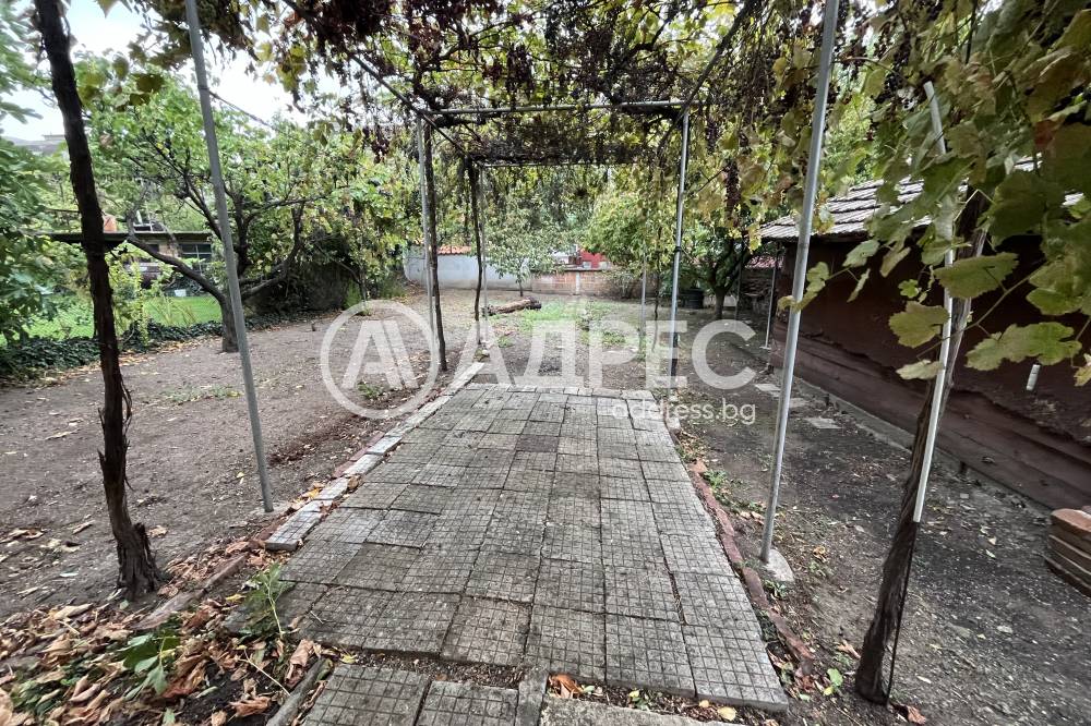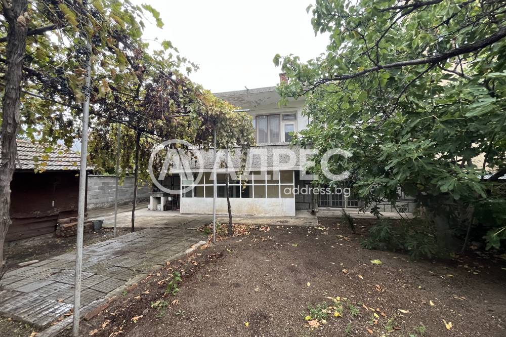 Масивна тухлена къща с търговски обект и голям двор 464 кв.м. Първият етаж е сутеренен и се състои от дневна с кухня, една спалня и баня. Вътрешни стълби към втория етаж, където са разположени две спални, дневна, трапезария с кухня, санитарен възел и две тераси. Сградата е монолитна, на плоча между етажите. Имотът може да се ползва от две семейства, има два отделни входа. Парцелът е голям, с гараж. Допълнителна постройка 27 кв.м. за търговска дейност. Намира се близо до бул. Панайот Хитов.