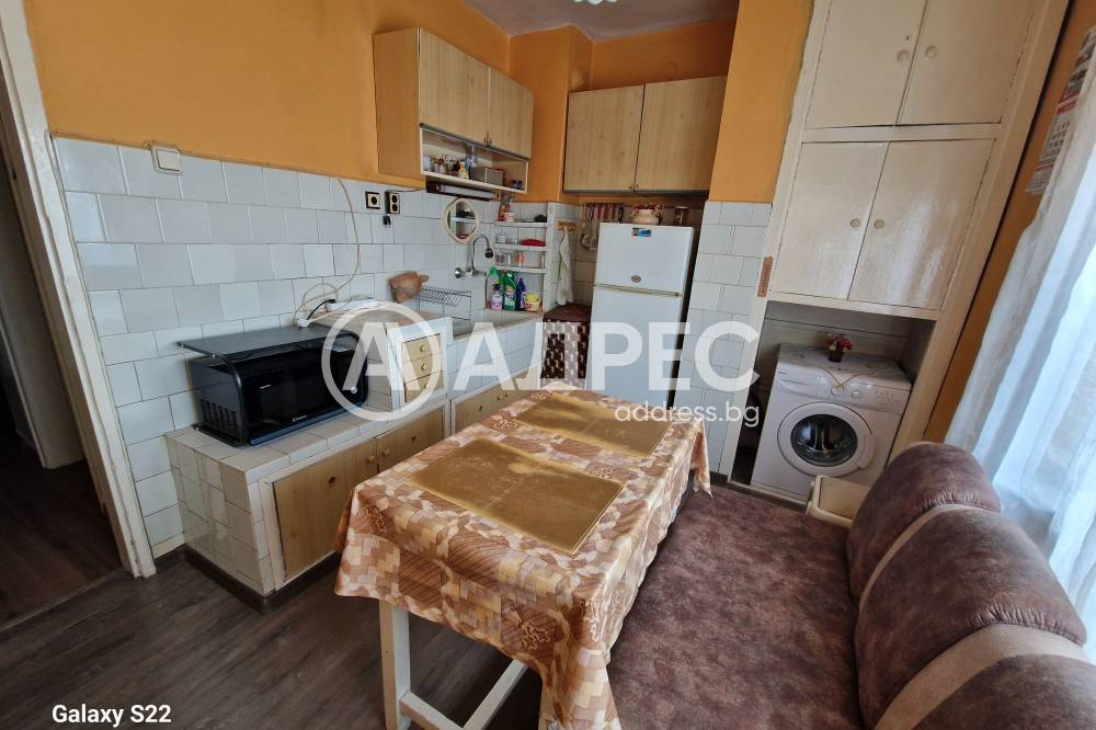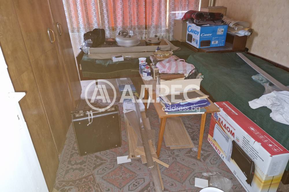 Тристаен тухлен апартамент на трети жилищен етаж. Състои се от кухня,хол, две спслни, баня,тоалетна, килер и две тераси. Имотът се нуждае от ремонт, частично сменена дограма.ТЕЦ в блока. Прилежащо мазе .Намира се в близост до Военна болница. Ключ в кантората на Адрес.