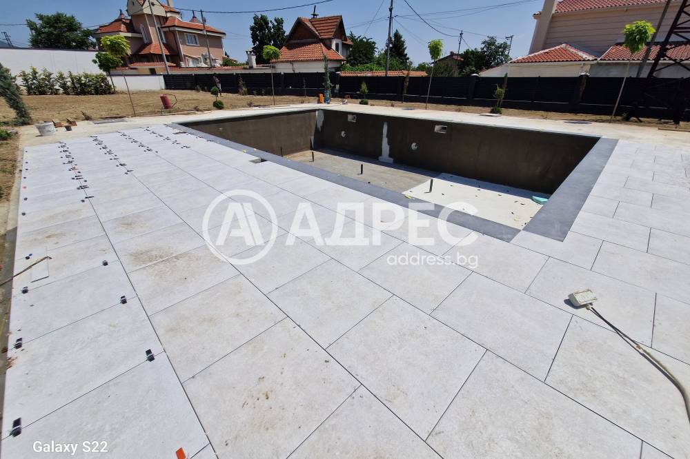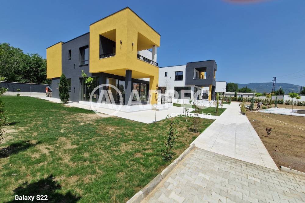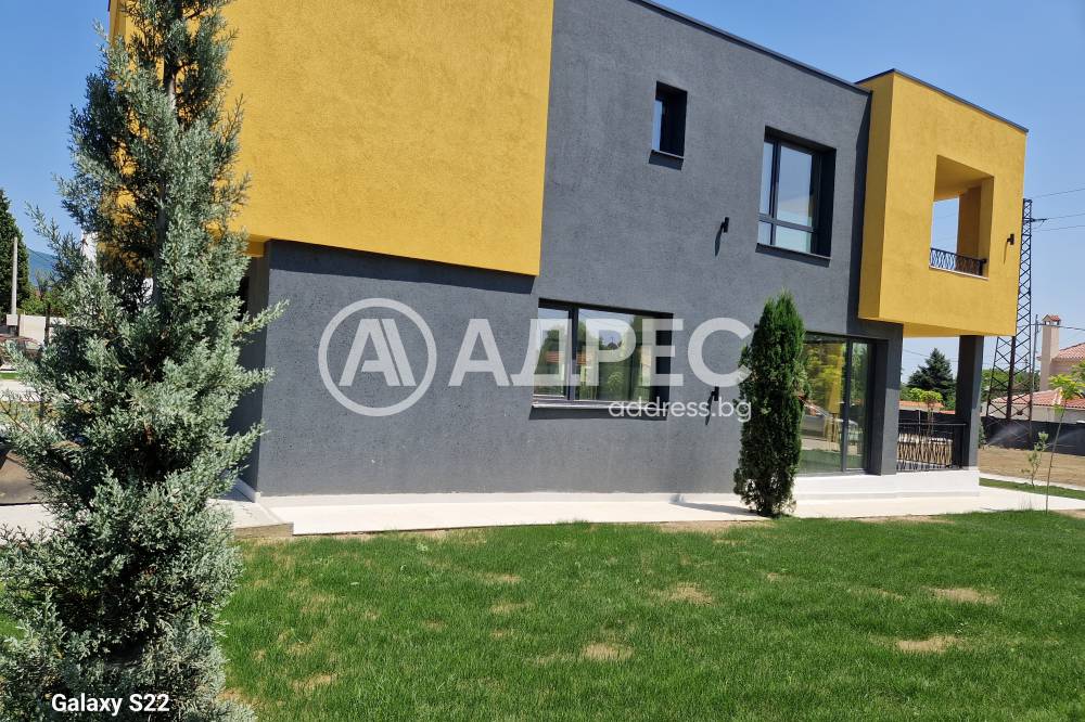 Двуетажна еднофамилна къща в затворен комплекс. Намира се в местността Андреева чешма. Имотът е с РЗП 201 кв.м и разпределен в два жилищни етажа. Първи етаж - отворено пространство кухня, трапезария и хол, баня с тоалетна , килер и голяма веранда. Втори етаж - три спални / едната с дрешник и баня /, баня с тоалетна и две тераси. Архитектурният дизайн е съобразен с търсенето и изискванията на потенциалните купувачи. Целта е постигане на максимален комфорт и удобство. Стилна и модерна къща с добре аранжиран двор разположена в подножието на планината. Басейн, декоративни дръвчета и зелени площи. Къщата е завършена с качествени материали. Много добра локация, светла, просторна къща , отлично предложение!!!