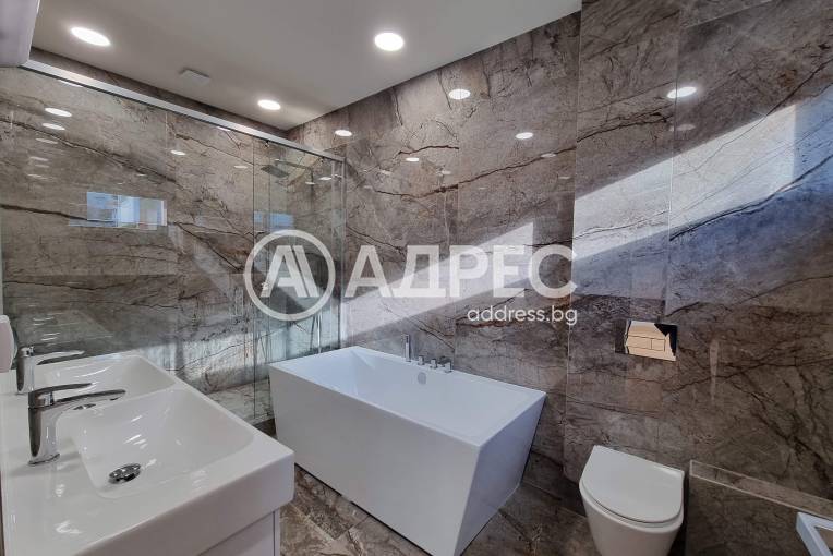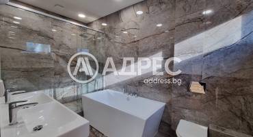 Къща в Бояна тип Б 6 (МЕБЕЛИРАНА), е с обща квадратура 452 кв.м. С Акт 16. Сутерен: височина на таваните 3 метра, гараж за два автомобила, техническо помещение, складови помещения, перално, фитнес зала, душ кабина и място за сауна. Две паркоместа пред къщата. Първи етаж: височина на таваните близо 3 метра, входно антре, коридор, просторна кухня с трапезария, спалня, баня с тоалетна, тераса – веранда на юг. В тази къща ще се насладите на просторна всекидневна, гледаща към центъра на София, с отворено пространство до тавана с височина около 6 метра и големи просторни прозорци създаващи чувството за по–близък контакт със заобикалящата ви природа. Втори етаж: височина на таваните от 3 метра. На него са разположени коридор, три големи спални, като едната има собствен дрешник и баня 8 кв.м. и още една баня, обслужваща другите две спални. Голяма тераса на юг с гледка към Витоша.