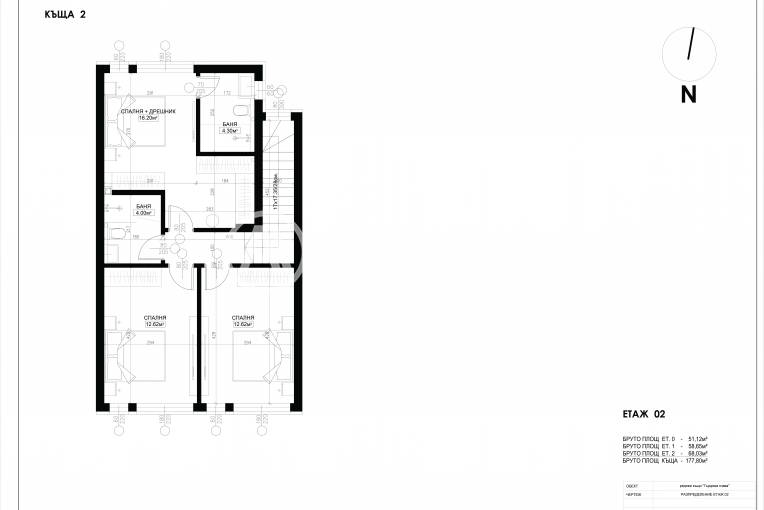 • Три самостоятелни спални, разпределени функционално на горните етажи