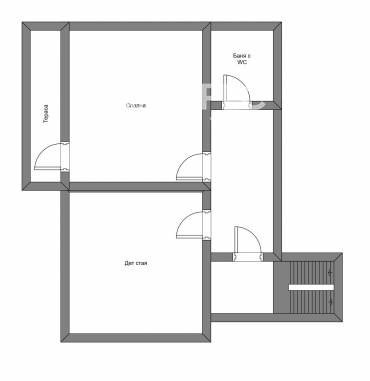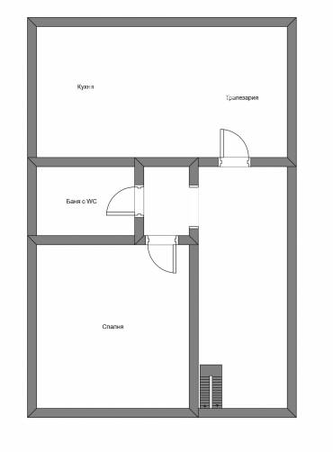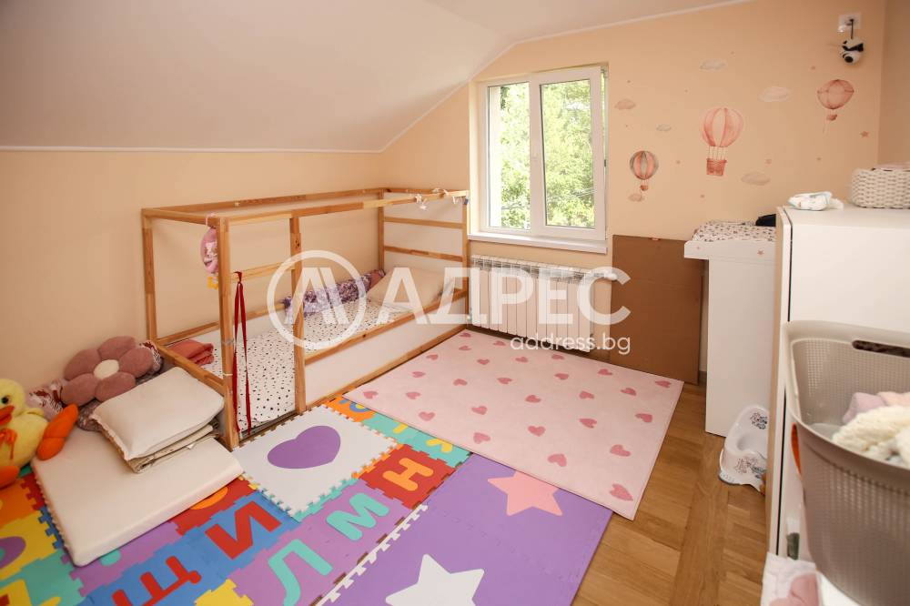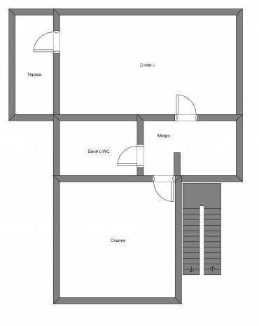 Разпределение: полусутеренен етаж - входно антре, баня с тоалетна, спалня, кухня с трапезария, мазе; 1ви ет. - входно антре, хол, спалня, баня с тоалетна; 2ри ет. - входно антре, родителска спалня, детска стая, баня с тоалетна, таванско помещение; гараж - 21 кв.м.