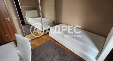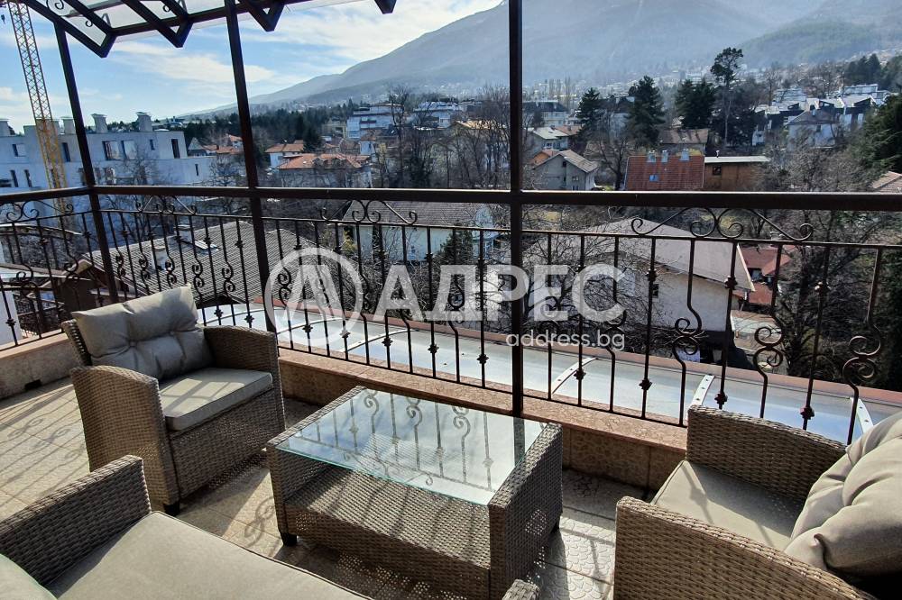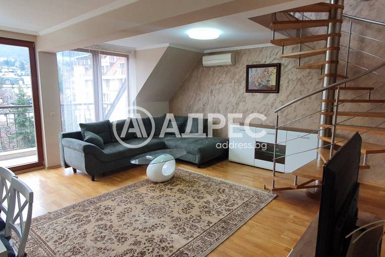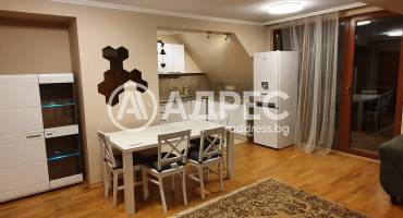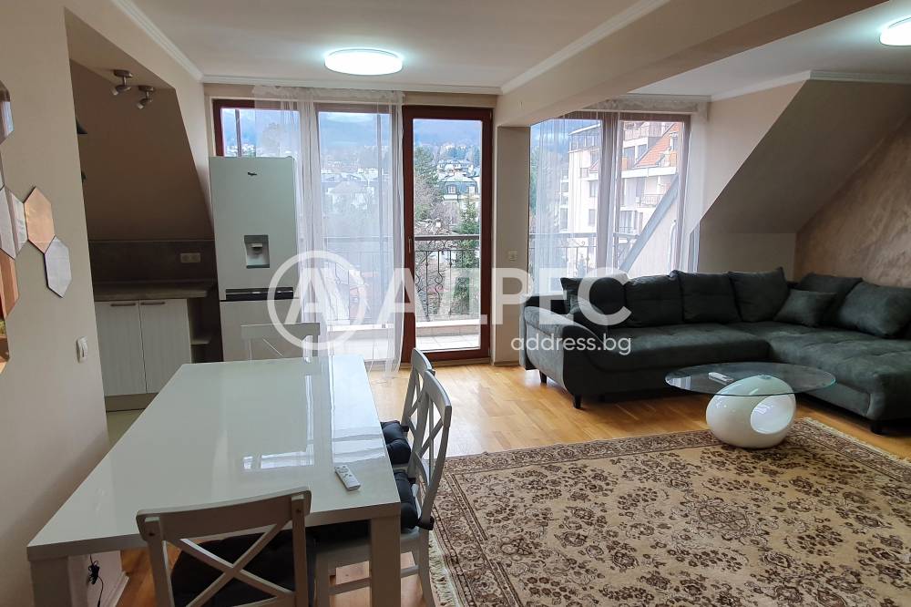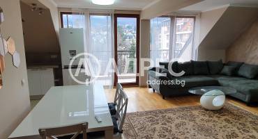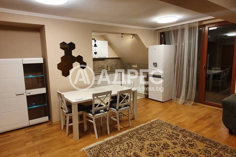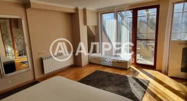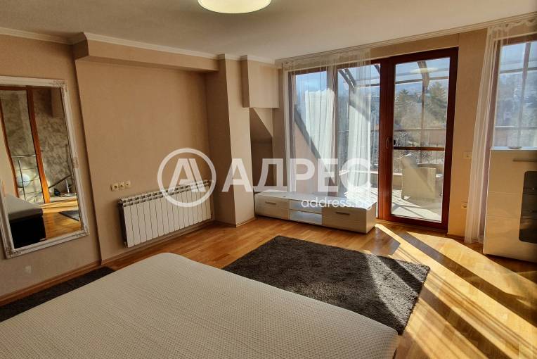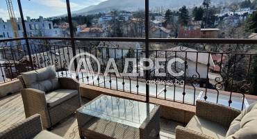 Входно антре, просторна всекидневна с кухненски бокс, трапезария и тераса, която предоставя панорамна гледка към Витоша, баня с тоалетна и две спални.