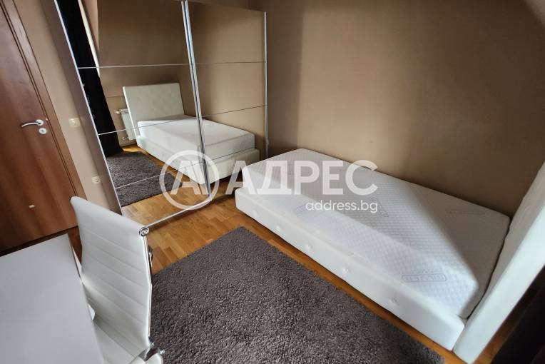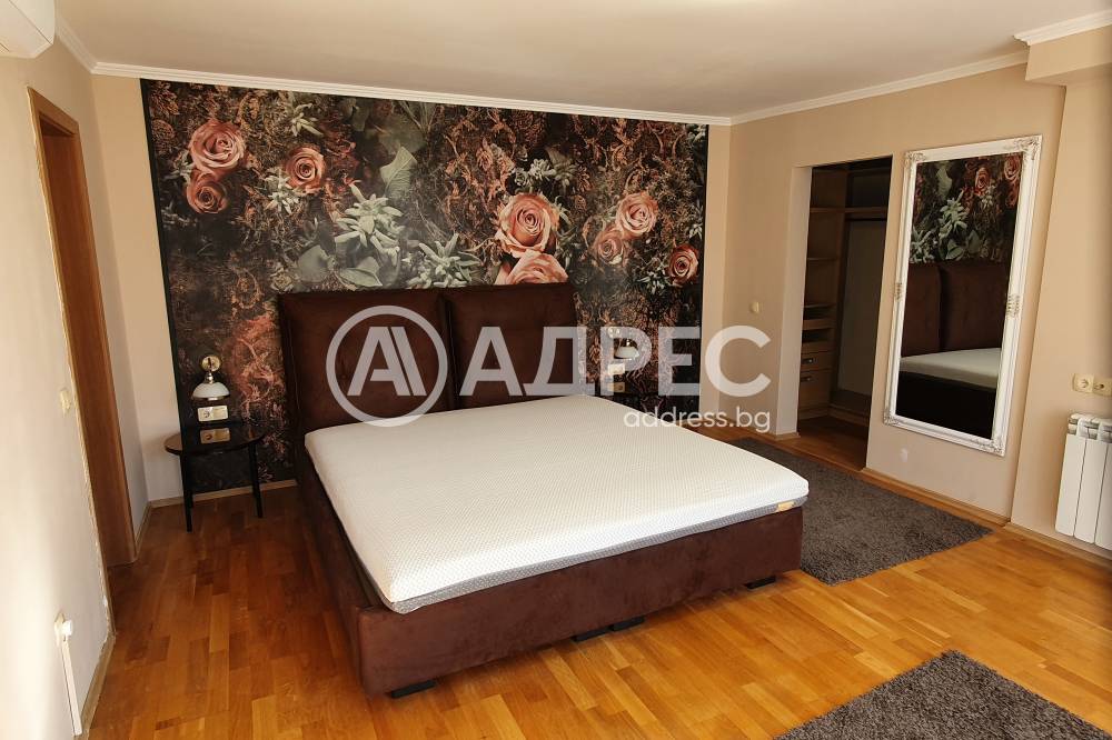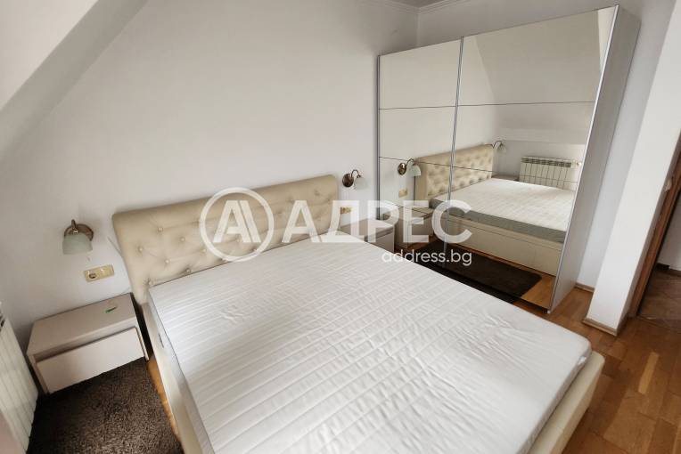 Голяма спалня с дрешник, баня с тоалетна и тераса.