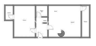 Входно антре, просторна всекидневна с кухненски бокс, трапезария и тераса, която предоставя панорамна гледка към Витоша, баня с тоалетна и спалня.