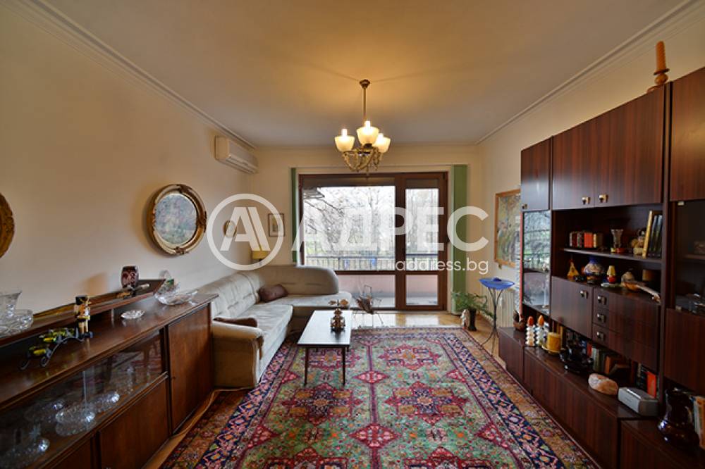 Просторен апартамент до НДК. състои се от :Голям хол - около 40кв. м с преход към една спалня - 16кв. м, самостоятелна спалня - 17кв. м, кухня, баня , тоалетна, два балкона-пред хола и едната спалня и един общ за кухнята и преходната спалня, входно антре и коридор с два вгадени гардероба. ОТОПЛЕНИЕ: ТЕЦ. ПОДОВИ НАСТИЛКИ: хол и спални - масивен паркет, кухня - дюшаме, коридор - мозайка, санитарни помещения - фаянс и теракота. PVC дограма. ИЗЛОЖЕНИЕ: хол и самостоятелната спалня - Възможно е да се отдаде обзаведен или необзаведен!