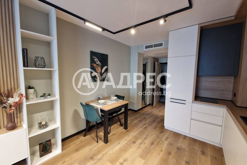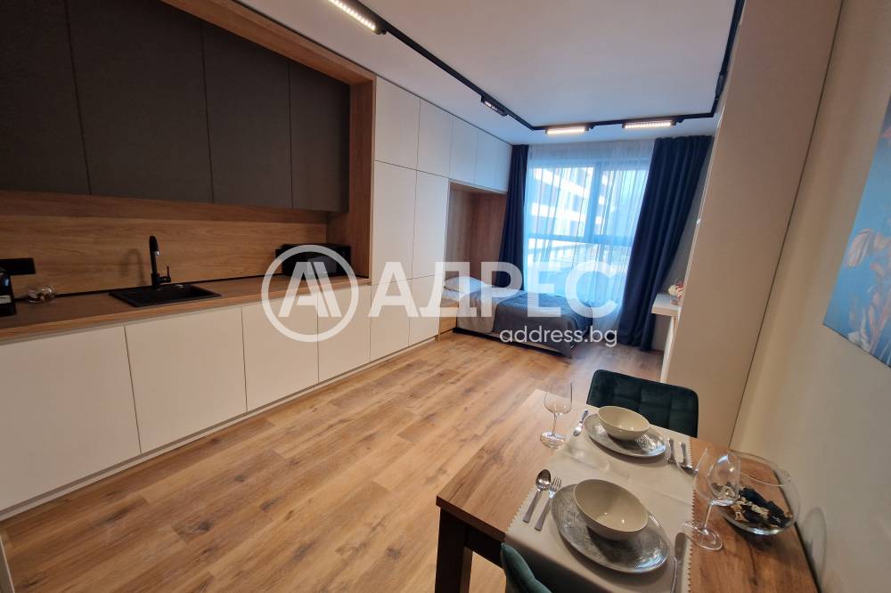 Без Комисионна. Напълно обзаведен едностаен апартамент състоящ се от дневна с кухненски бокс, спален кът, и бани с тоалетна.