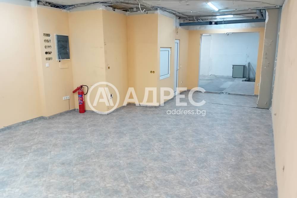 Търговски обект с голяма отворена площ, подходящ за множество дейности. 249кв.м., разпределени на две нива: 105,45кв.м. на партер с витрина и два входа и 142,98кв.м. в сутерен с допълнителен самостоятелен вход с товарен асансьор и автомобилен достъп за зареждане.