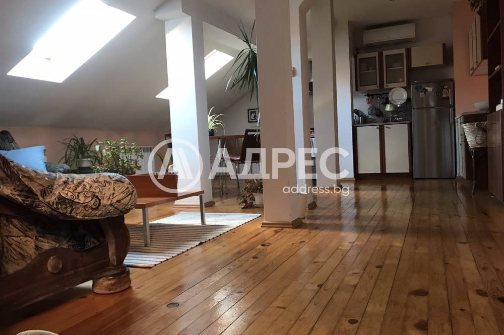 Втори и трети етаж от самостоятелна къща, разположена в центъра на София до пл. "Руски паметник". Вторият етаж (103,80 кв. м.) се състои от голямо предверие, 2 спални, отделна кухня, хол и баня с тоалетна. Третият етаж около 60 кв. м. светла площ, е със застроена площ от 103,80 кв.м. - представлява голямо еднопространствено помещение с кухненски бокс, баня с тоалетна, спалня и два килера. Прилежащ и отремонтиран светъл сутерен от 32 кв. м.,. Отоплението е с климатици 2 броя на третия етаж, 2 броя на втория етаж и един в сутерена. Висококачествена дограма. Топлоизолация. Ремонтиран покрив.