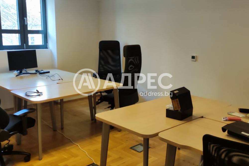 Адрес отдава офис в представителна офис сграда в самия център на столицата, до министерски съвет. Офисът се състои от две работни помещения, кухненски бокс. Наемната цена е 13 евро на кв.м без ДДС. Такса управление и поддръжка - 3 евро на кв.м без ДДС като такса смет и разходи за вода, влизат в таксата поддръжка- Останалите комунални разходи :ток, отопление, климатизация и вентилация са съобразно индивидуални измервателни уреди. Има опция за наемане на подземни или надземни, единични или двойни паркоместа на цени от 120 и180 евро на месец без ДДС