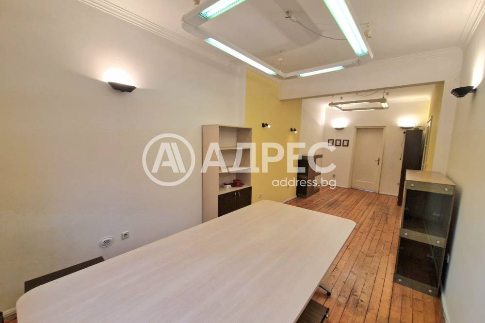 Офис в централната част на столицата. Офиса е разположен на трети жилищен етаж с площ от 65кв.м. и се състои от две преходни помещения , кухненски бокс с излаз на тераса и санитарен възел. Офиса се отдава с наличното обзавеждане в него. Отоплението е на ТЕЦ.До офиса има наличен частен паркинг с почасово паркиране или абонамент.