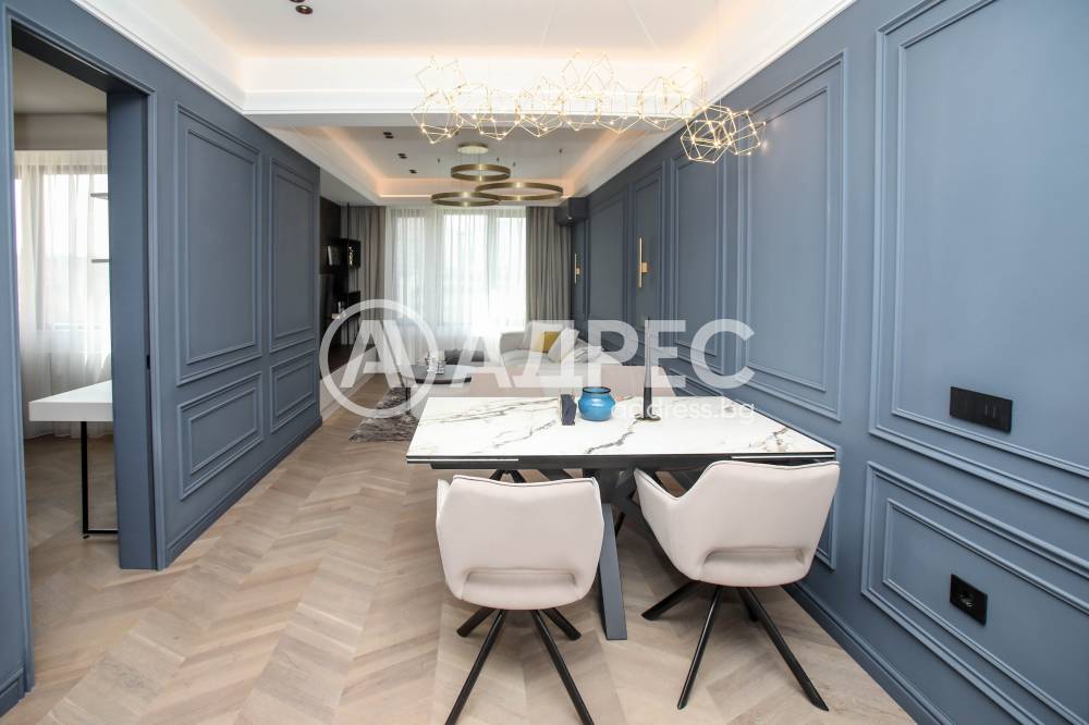 Панорамна гледка към църквата "Свети Георги" . Апартаментът е луксозно отремонтиран и напълно обзаведен, съчетавайки съвременен стил с удобство и елегантност. Интериорът е изпълнен с висококачествени мебели и материали.