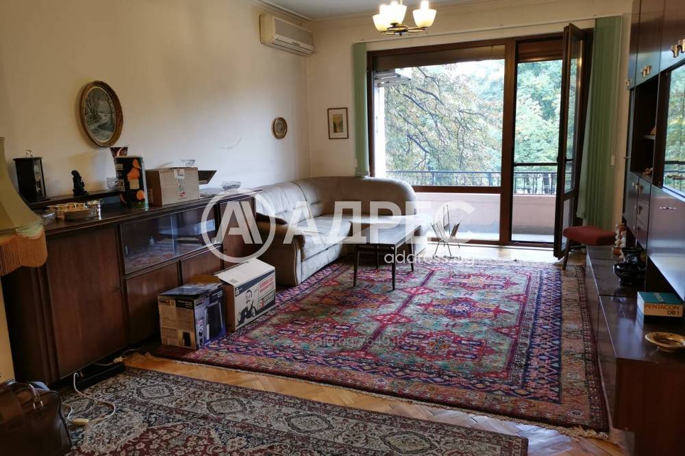 ПРОСТОРЕН и АРИСТОКРАТИЧЕН тристаен апартамент, на топ място в центъра на София, Намира се на 2-ри етаж над магазини..110 кв. м. по нотариален акт,без терасите /по замервне-120 кв.м....Състои се от голям хол - около 40кв. м с преход към една спалня - 16кв. м, самостоятелна спалня - 17кв. м, кухня, баня , тоалетна, два балкона-пред хола и едната спалня и един общ за кухнята и преходната спалня, входно антре и коридор с два вградени гардероба. ТЕЦ. Подови настилки: хол и спални - масивен паркет, кухня - дюшаме, коридор - мозайка, санитарни помещения - фаянс и теракота. PVC дограма. Изложение:: хол и самостоятелната спалня - запад, кухня и втора спалня - изток. Таван - 12 кв. м,, ид. ч.земя.