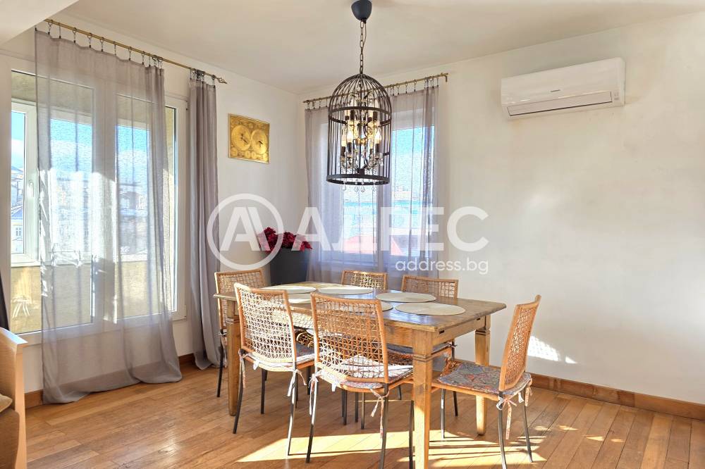 Предлагаме за продажба стилно обзаведен тристаен апартамент, разположен на емблематичен адрес в сърцето на София-бул. „Мария Луиза“. Имотът съчетава простор, светлина и градска атмосфера с изключителна гледка към емблематични сгради в центъра.