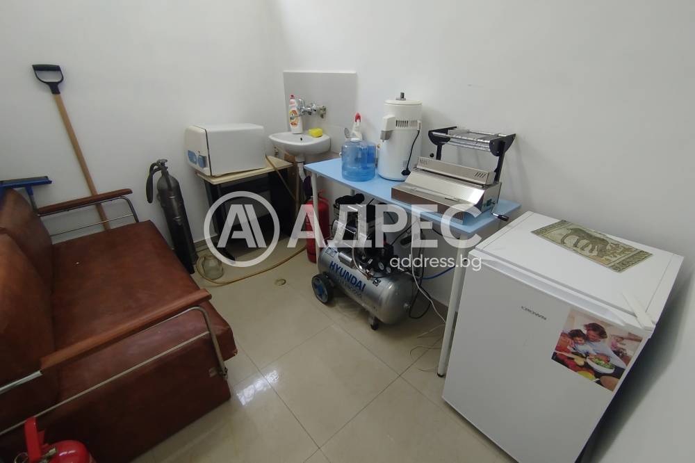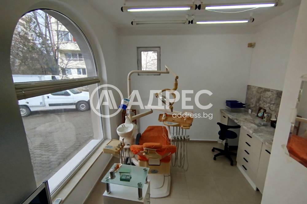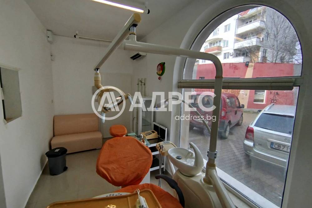 Адрес предлага оборудван стоматологичен кабинет, състоящ се от работна зала, оборудвана с дентален юнит, складово помещение /отделно от работната зала/ оборудвано с въздушен компресор, вързан към денталния юнит, чакалня и санитарен възел. Цената е с включено ползване на оборудването.