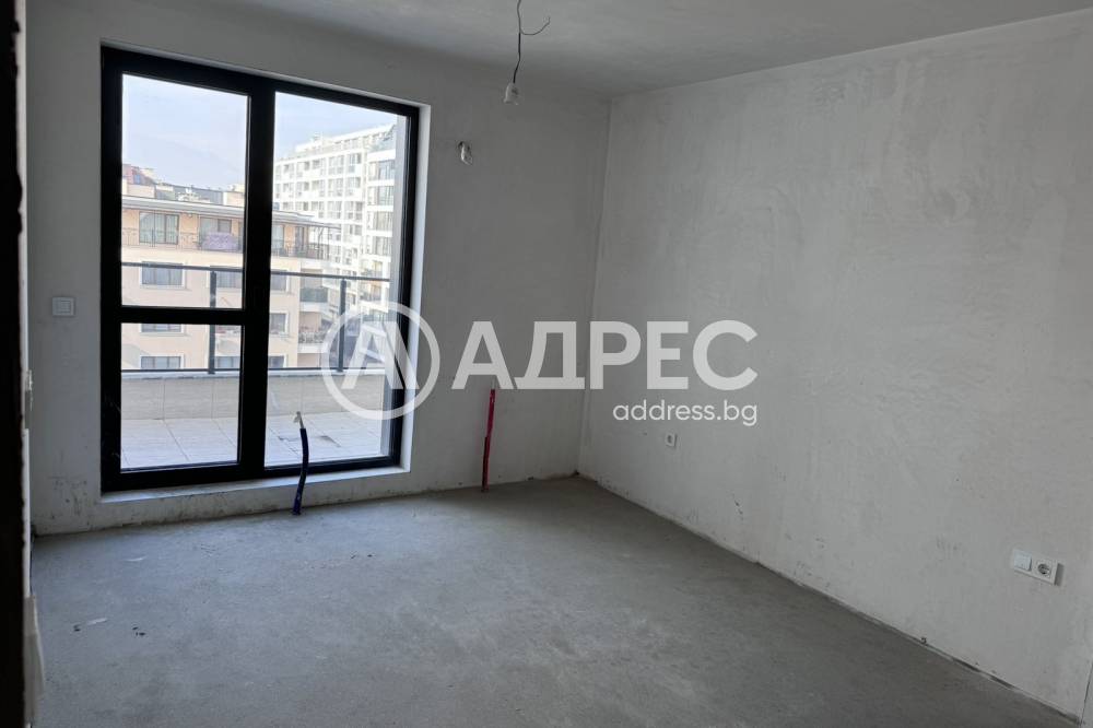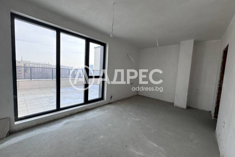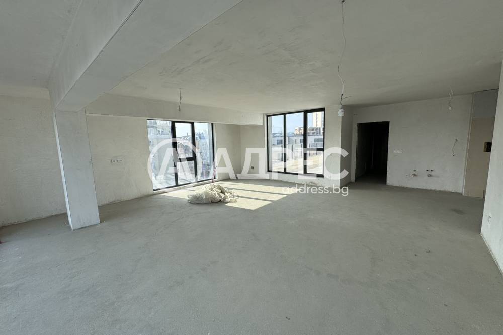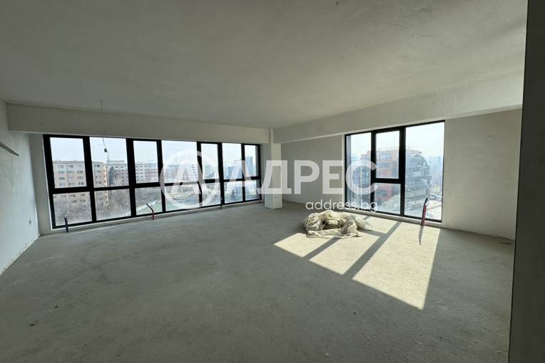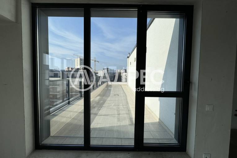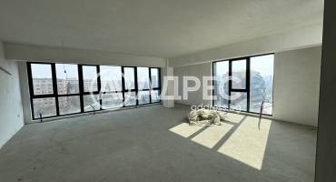 Просторен тристаен апартамент, ситуиран е на последен 6-ти етаж (5-ти жилищен) и е със следното разпределение: коридор, просторна дневна с кухненски бокс, две спални, две бани и три панорамни тераси. Изложение: Ю/И. Опция за покупка на паркомясто. Складово помещение, включено в цената