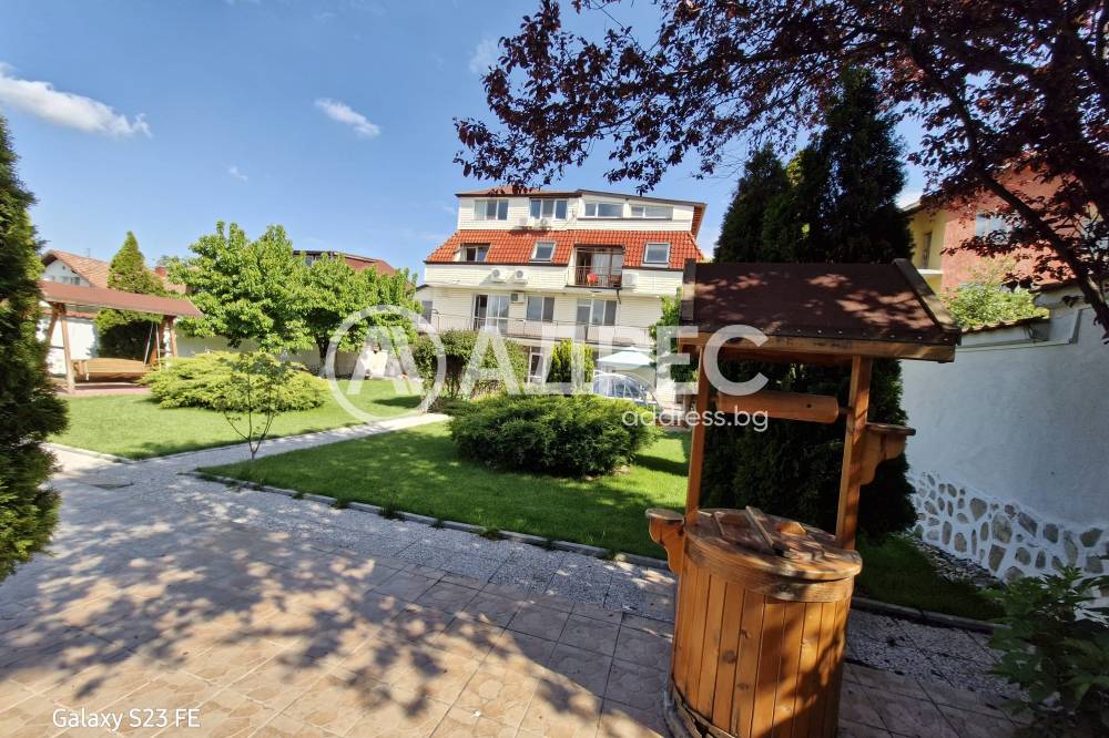Многофамилна къща за целогодишно ползване, състояща се от четири самостоятелни апартамента по средно 150 квадратни метра на всеки етаж и сутерен с два входа. Има двоен гараж и възможност за паркиране на още няколко автомобила пред двора. Сградата е основно ремонтирана, външна санировка сайдинг, обзавеждане. Разполага с равен, богато озеленен и прекрасно аранжиран двор с баскетболно игрище, тенис, батут, кладенец, беседка, басейн отопляем и барбекю зона. Помещението в сутерена е подходящо за фитнас, механа и др.