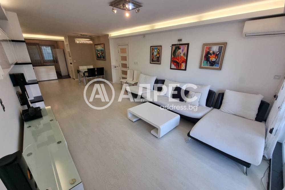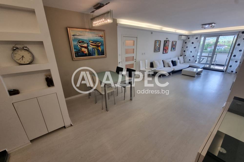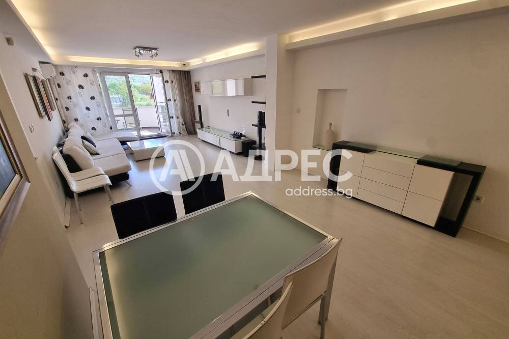 Тристаен обзаведен апартамент до Южен парк. Състои се от просторен хол с кухненски бокс, две спални, антре, две бани с тоалетни, килер и две тераси.