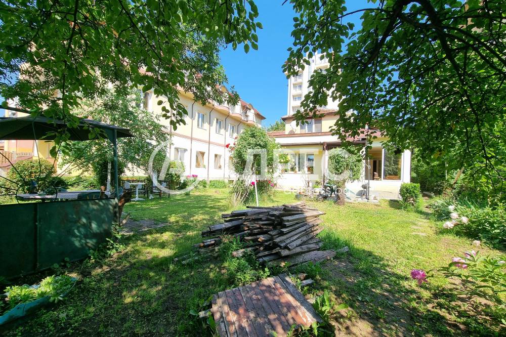 Продава се самостоятелна къща-близнак с отделен вход и двор, разположена в уреден и озеленен парцел с площ от 708 кв.м. Към имота принадлежат около 350 кв.м. реално използваем двор, от които 150 кв.м. са в задната част на парцела.