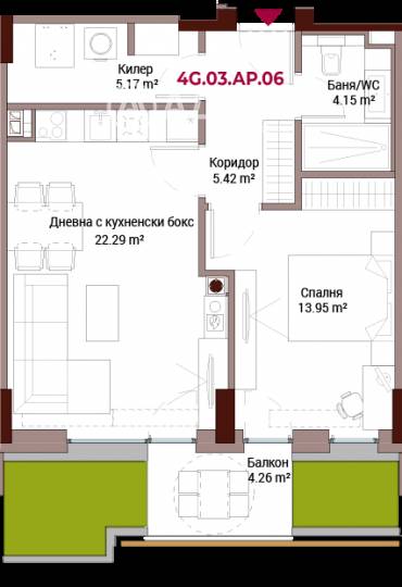 Двустаен апартамент в многофункционален комплекс с отворен достъп, базиран върху концепцията на „15-минутния град“.