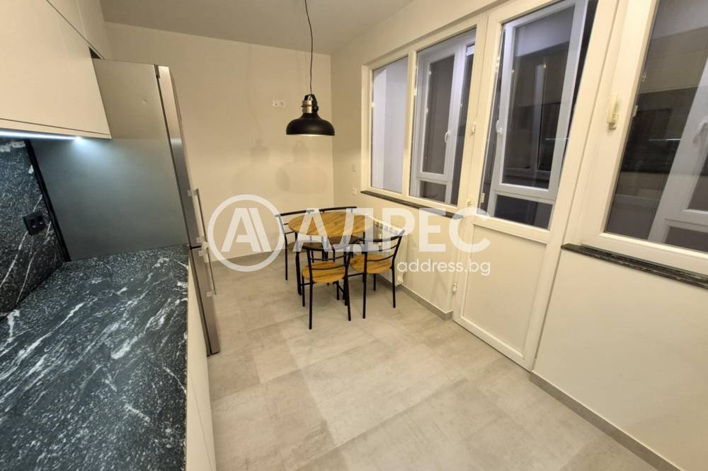Прекрасен, модерно обзаведен апартамент след основен ремонт с чисто ново обзавеждане. Отопление на ТЕЦ и климатици във всекидневната и спалнята. Към кухнята съдомиялна и комбинирана перална със сушилня. Инсталиран СОТ. При наемане се изисква депозит в разменр на 1000 евро. Свободен за наемане!