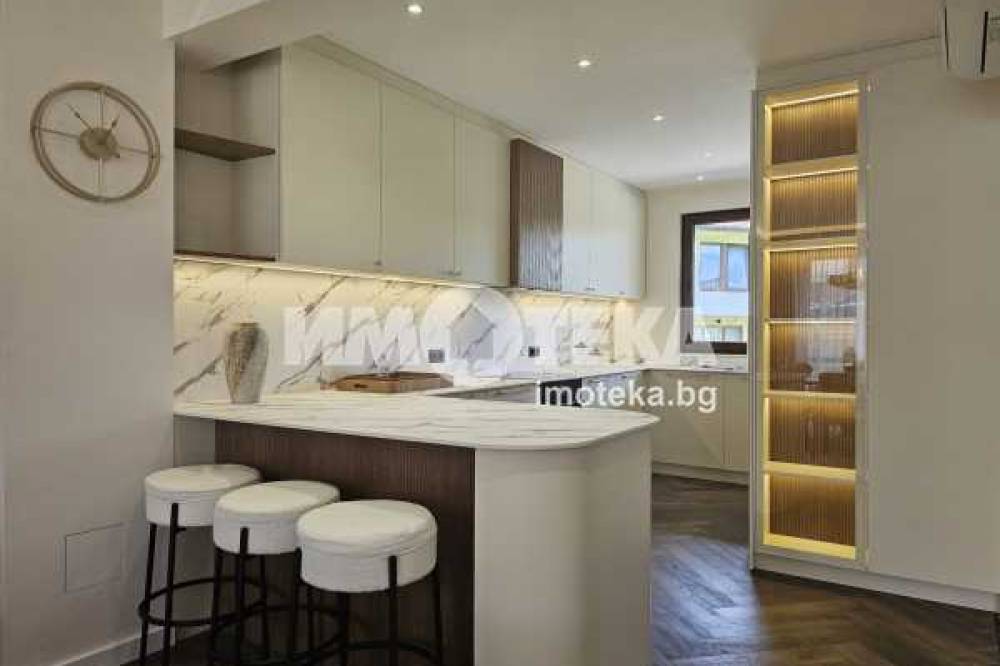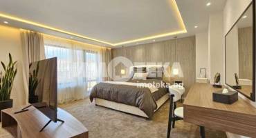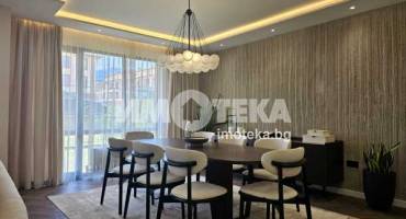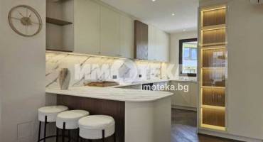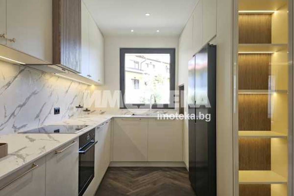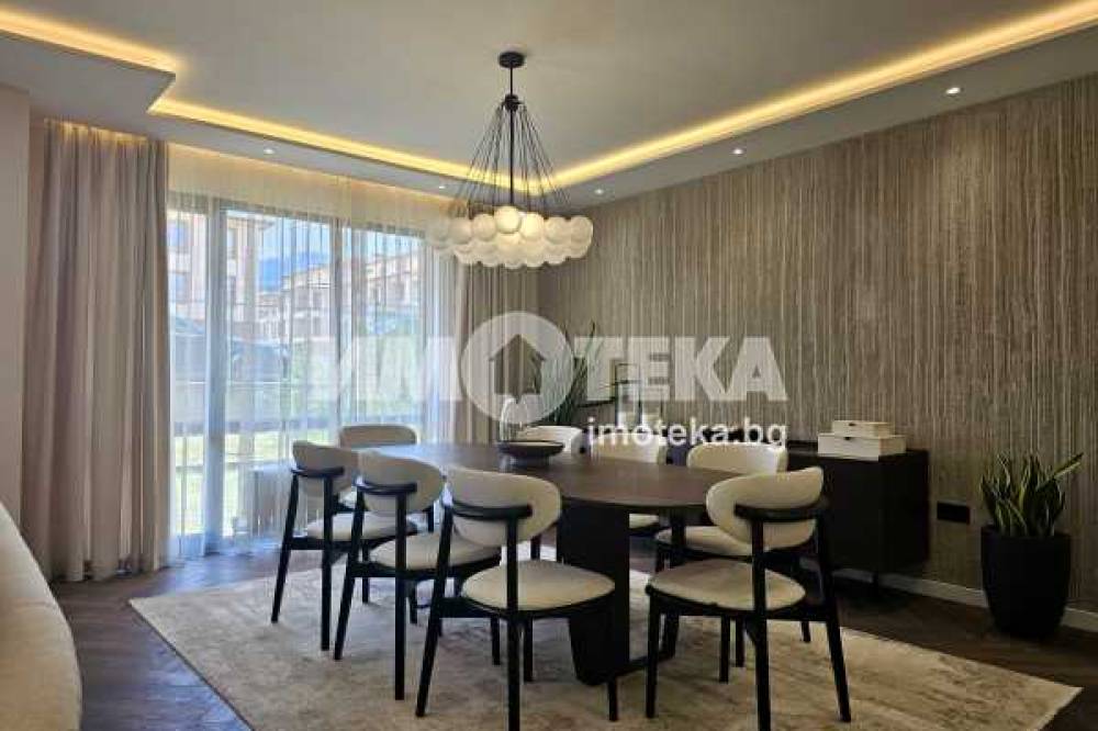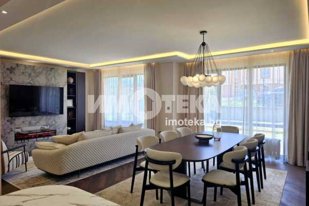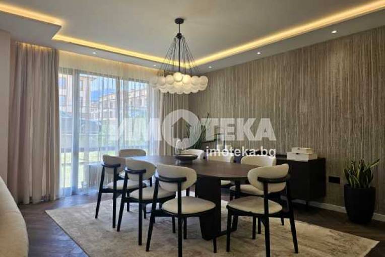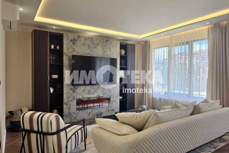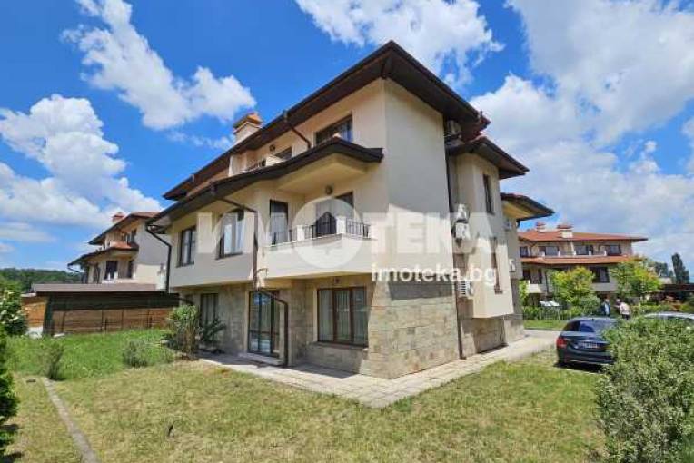 Луксозно обзаведена къща на три нива, устроена в добре поддържан жилищен комплекс от затворен тип с приятна паркова среда, завършена и обзаведена по индивидуален проект в еклектиктичен стил.