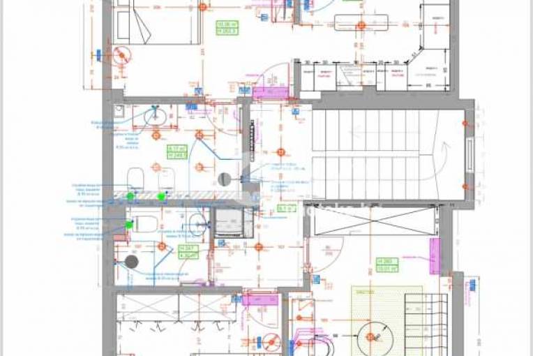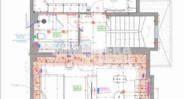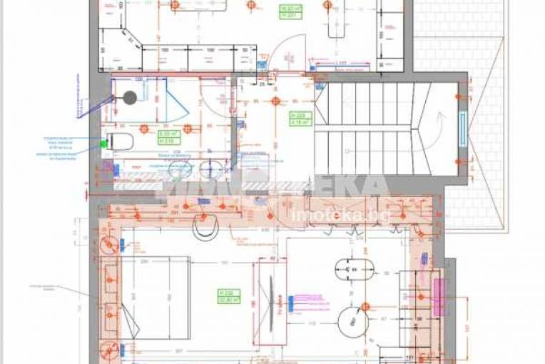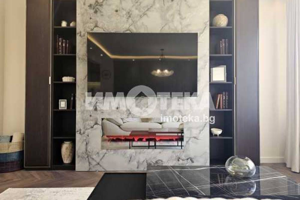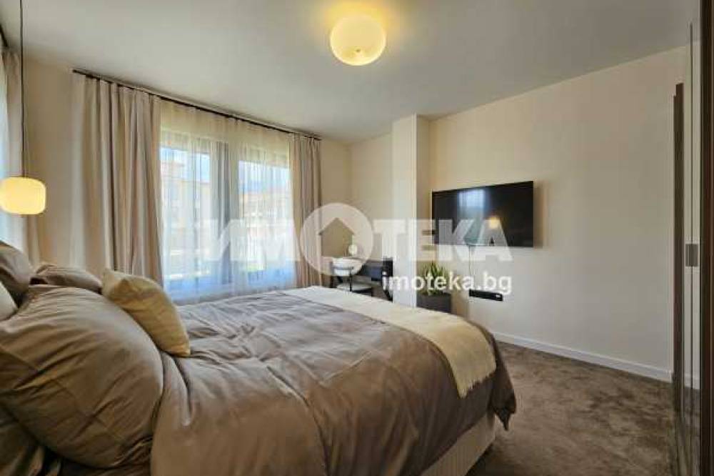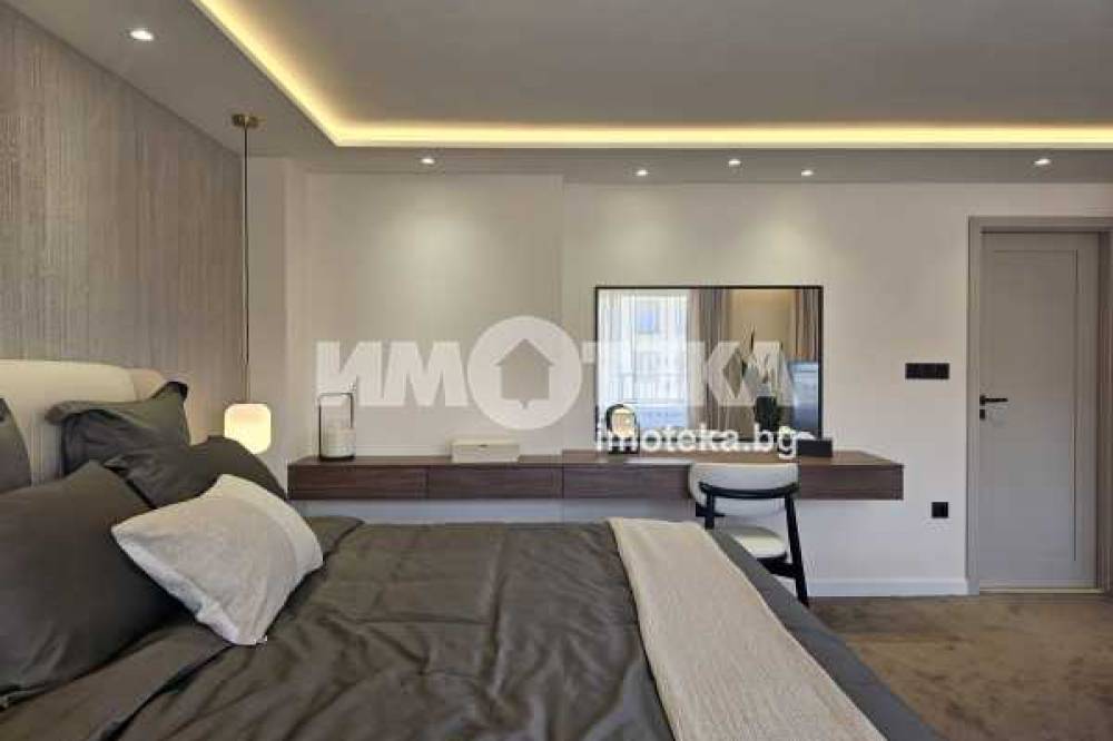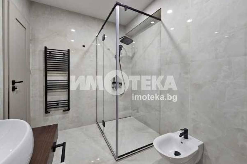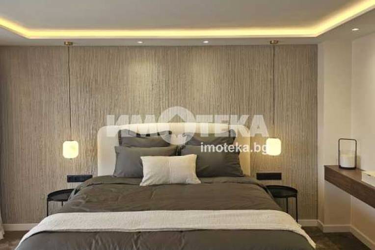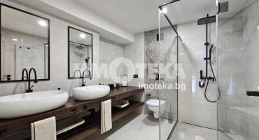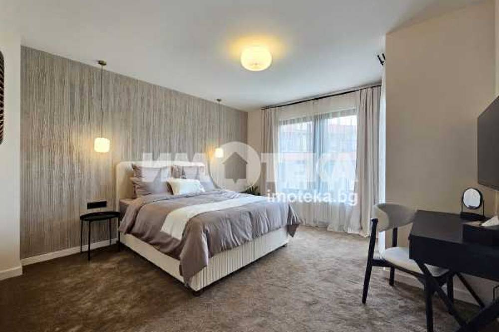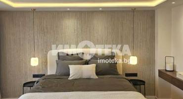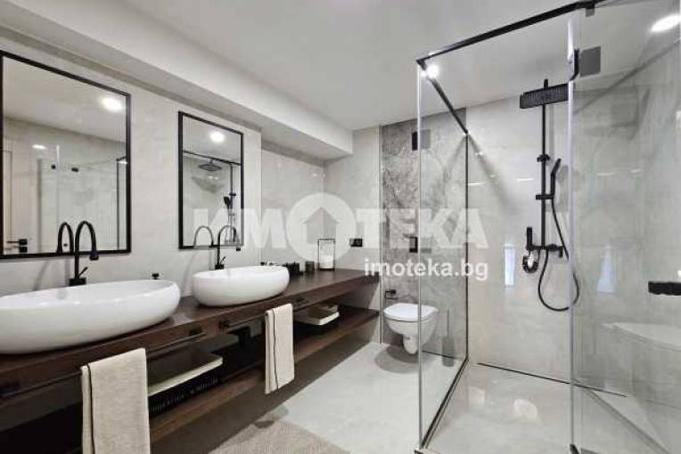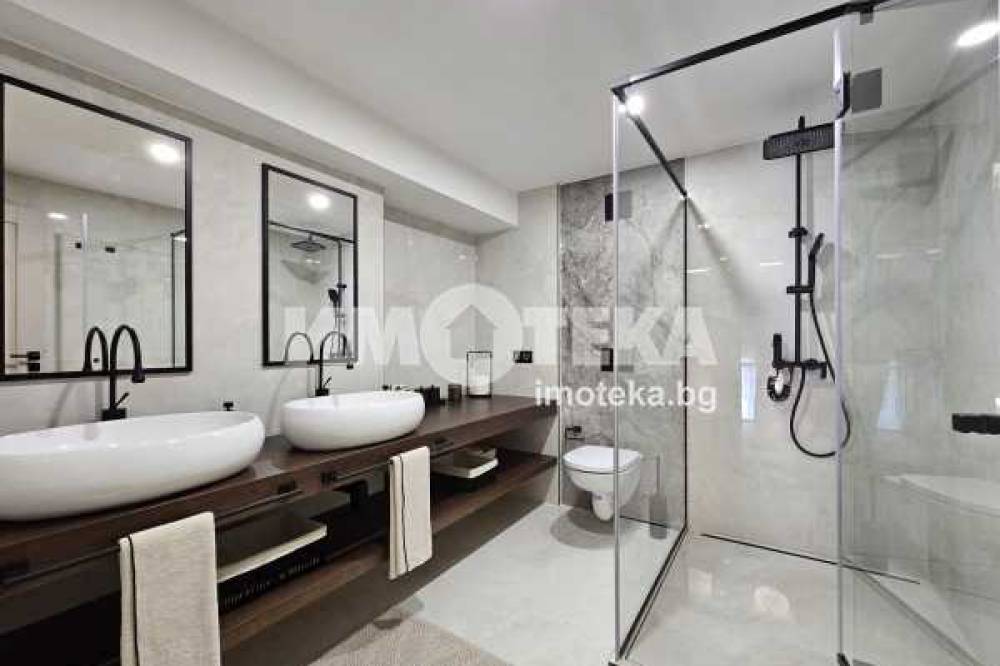 На второ ниво: две спални с бани едната с дрешник и кабинет с разтегателен диван, както и перален кът.