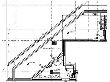 Разпределение: На първо ниво, просторна дневна зона с големи прозорци, които осигуряват много естествена светлина, спалня, баня с тоалетна, складово помещение, тераса и антре. На второ ниво, спалня и голяма покривна тераса.