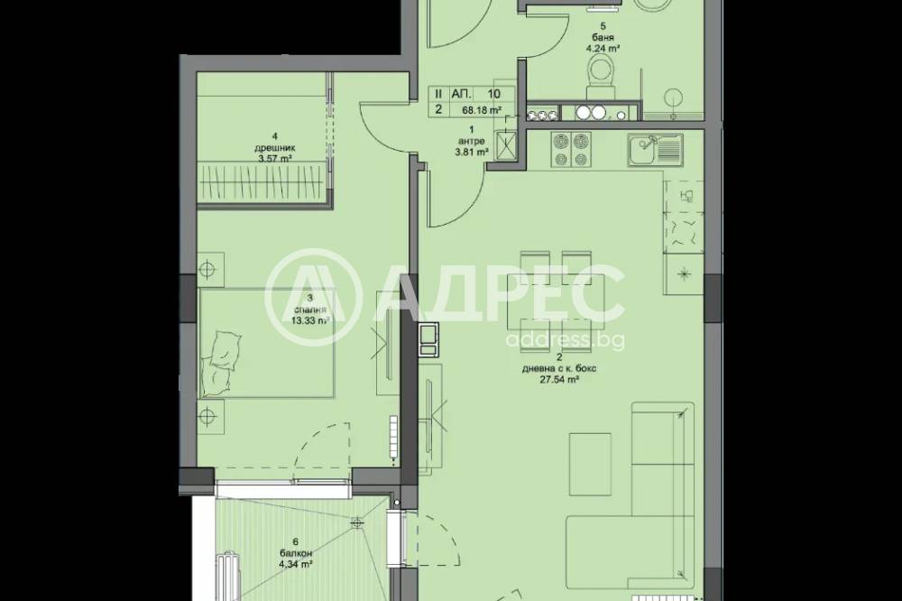 - Врати – блиндирани входни врати с включен обков, тристранно заключване, касова брава, секретен патрон, бронировка, обхватна каса, шпионка и дръжка, с покритие HPL – дървесен ефект.