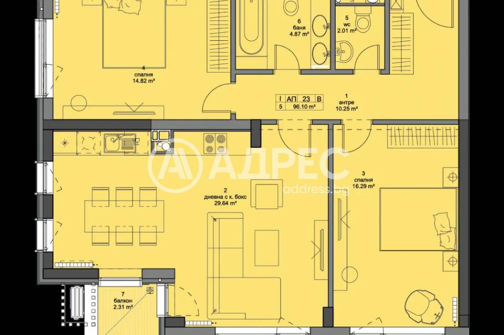 Тип Имот: Тристаен апартамент