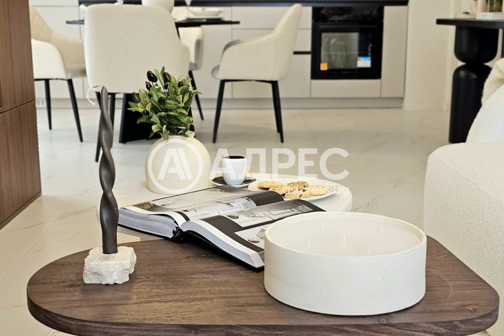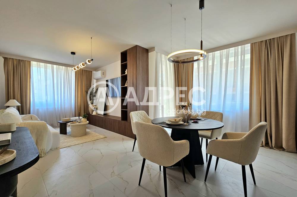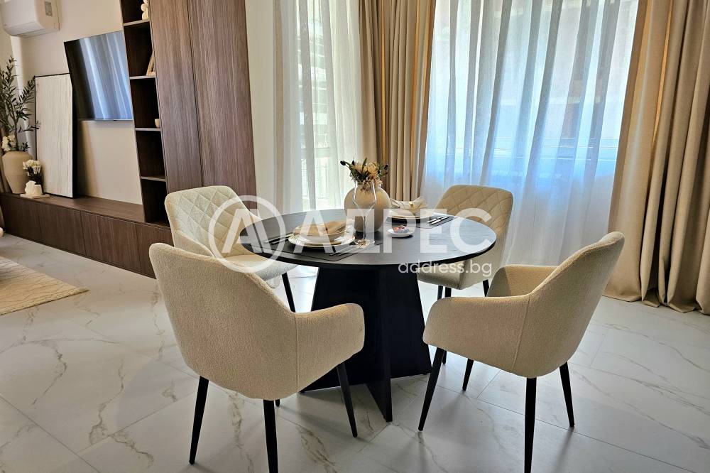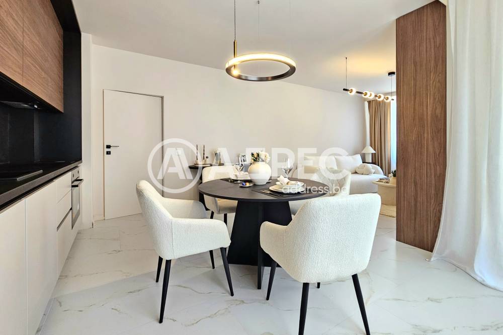 Луксозен тристаен апартамент, разположен в чисто нова сграда, завършен и оборудван с висок клас довършителни работи, мебели и електроуреди.