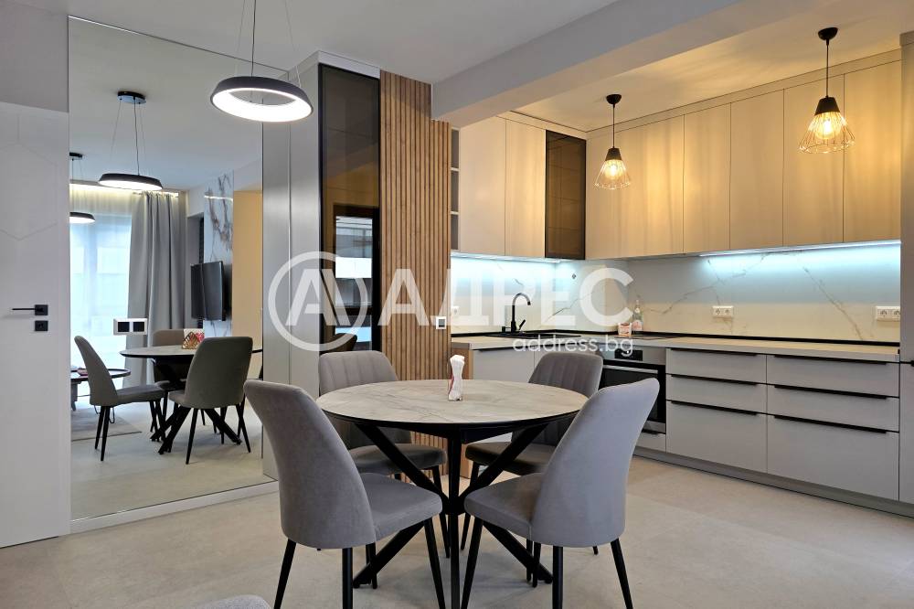 Апартамента е завършен до ключ и обзаведен с висок клас електроуреди, мултисплит система за отопление и охлаждане. Кухня и мебели по поръчка.