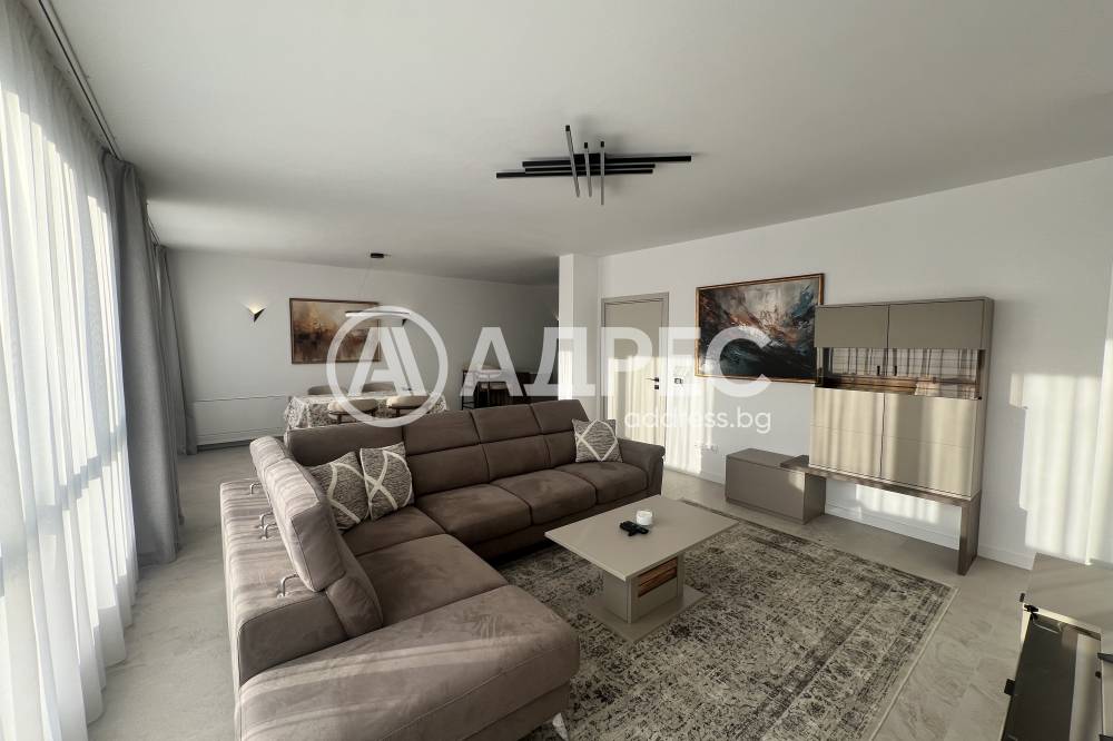 Чисто нов, тристаен напълно обазаведен апартамент, състоящ се от хол с бокс, две спални, едната от които е със собствена баня и прилежащо перално помещение. Отделно баня с тоалетна и самостоятелна тоалетна.