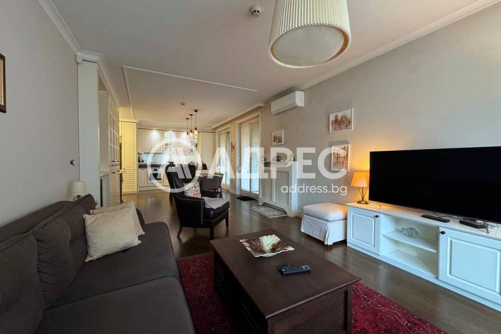 Обзавеждането е подбрано с вкус, съчетавайки модерни и артистични мебели, които създават приятна, топла и спокойна атмосфера. Жилището е с реална чиста площ от 80 кв.м и се намира в Maison Sofia - McGallery Collection на ул. Атанас Дуков.